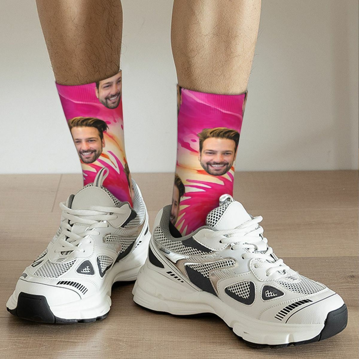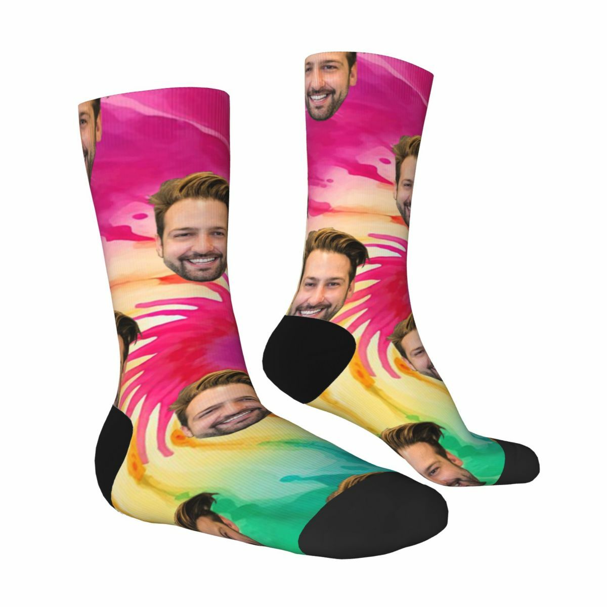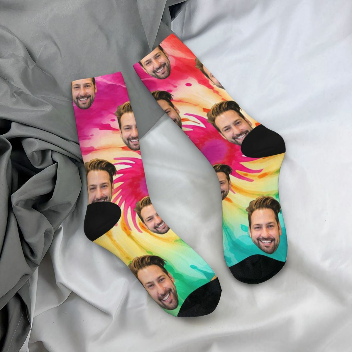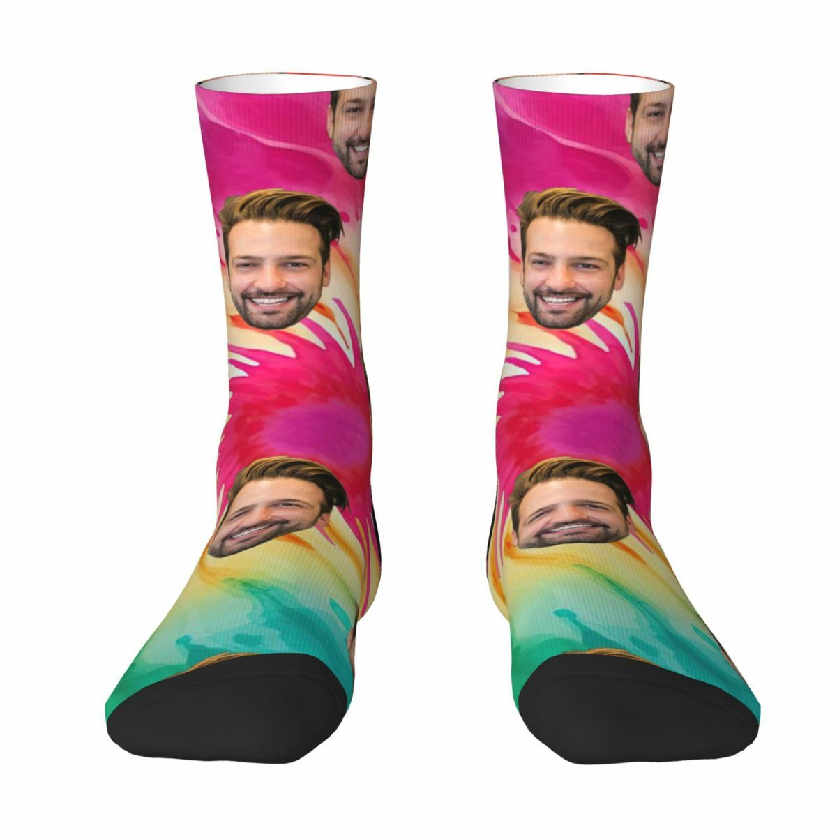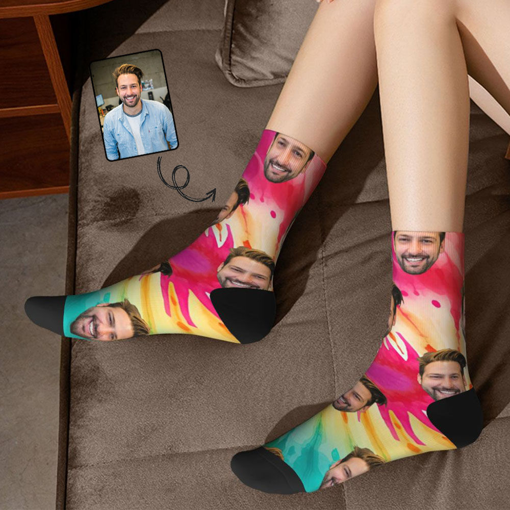 What sets our Tie-Dye Socks apart is the ability to customize them with a personal touch. Imagine wearing socks adorned with the photo of your best friend, sibling, or beloved pet. Our advanced printing technology allows us to transfer high-quality images onto the fabric, ensuring a clear and detailed representation of your chosen photo.Not only are these socks visually striking, but they also provide exceptional comfort. Crafted from soft and breathable materials, they offer a cozy and snug fit that keeps your feet happy all day long.