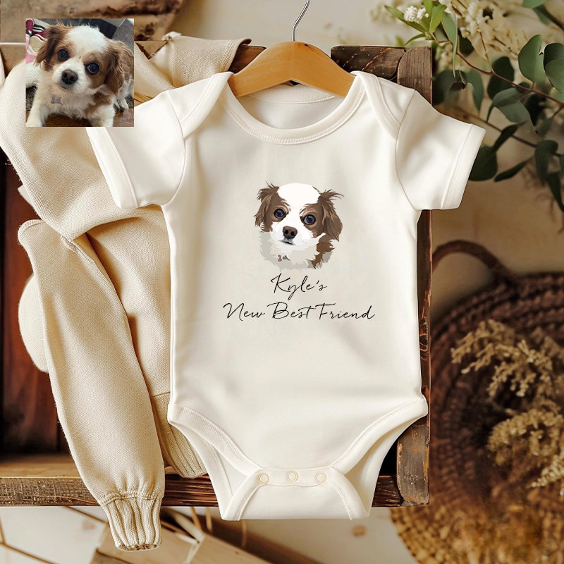 Personalized Baby Onesie Custom Pet Photo Watercolor Design Adorable Baby Shower Gift for Pet Lovers