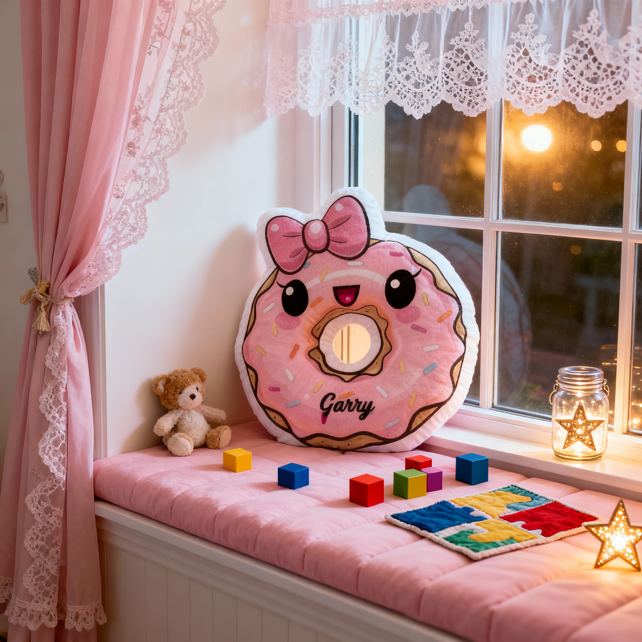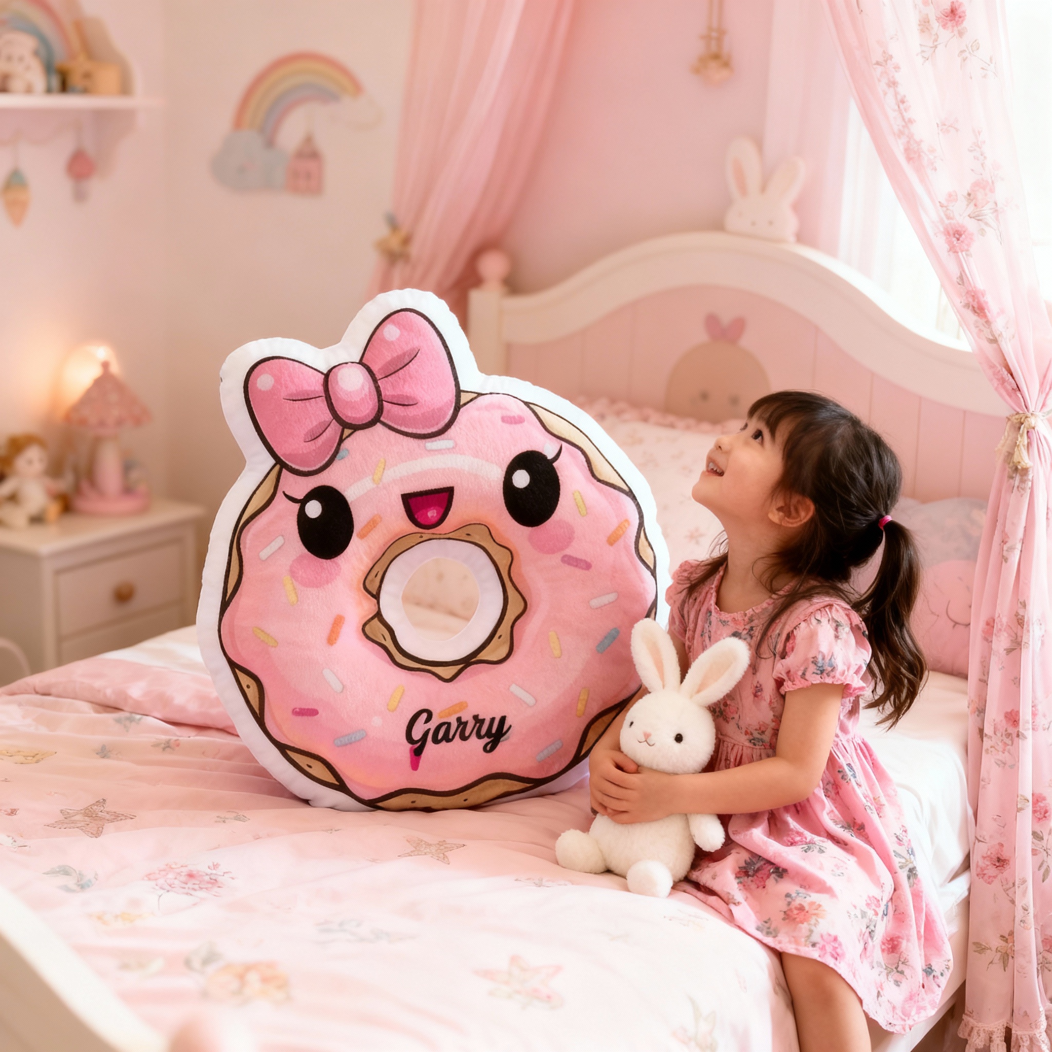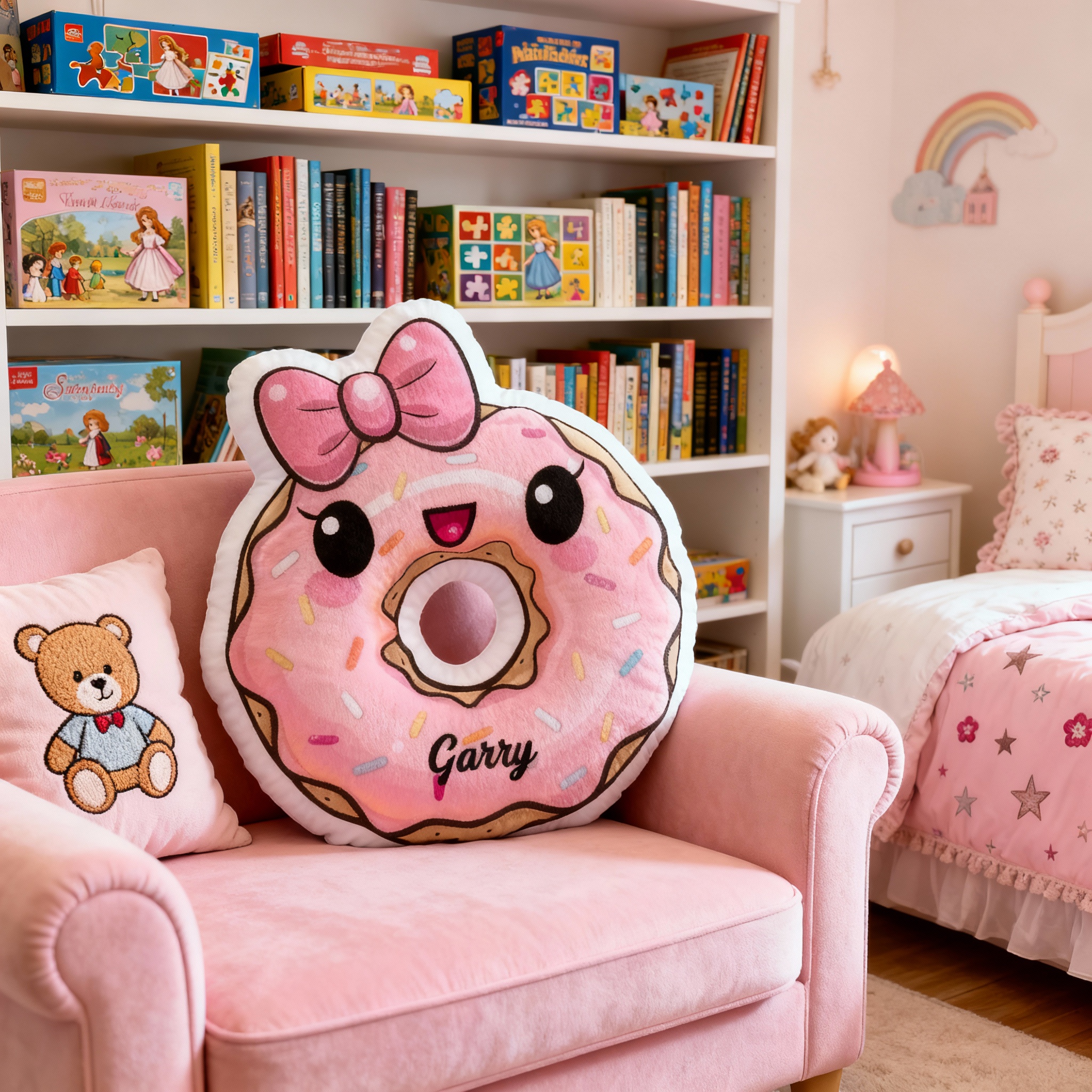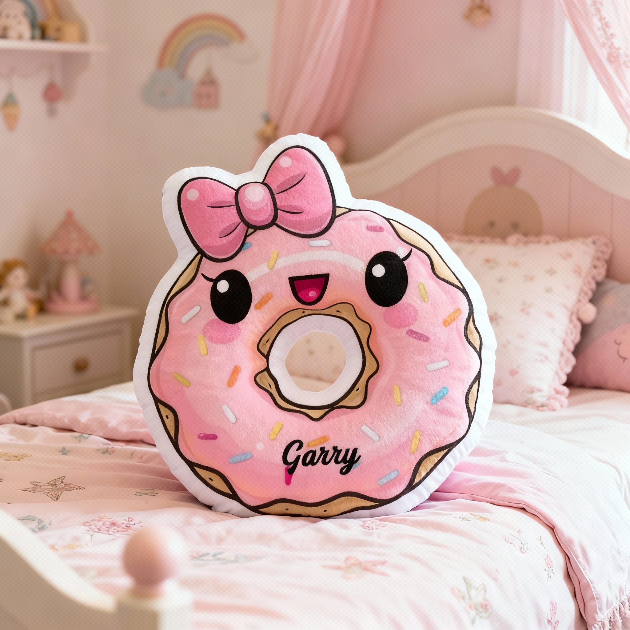 Personalized Bow Donut Pillow Customizable with Your Name Cute Gift for Girls