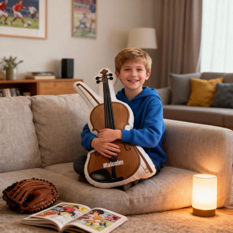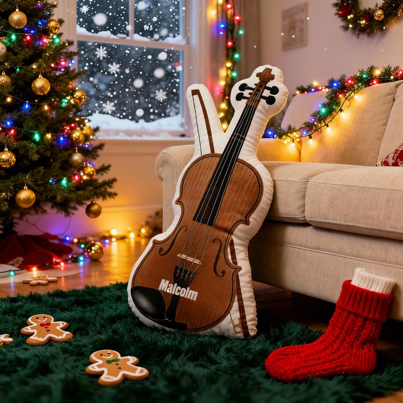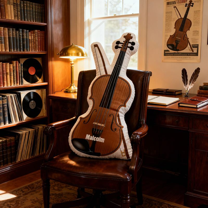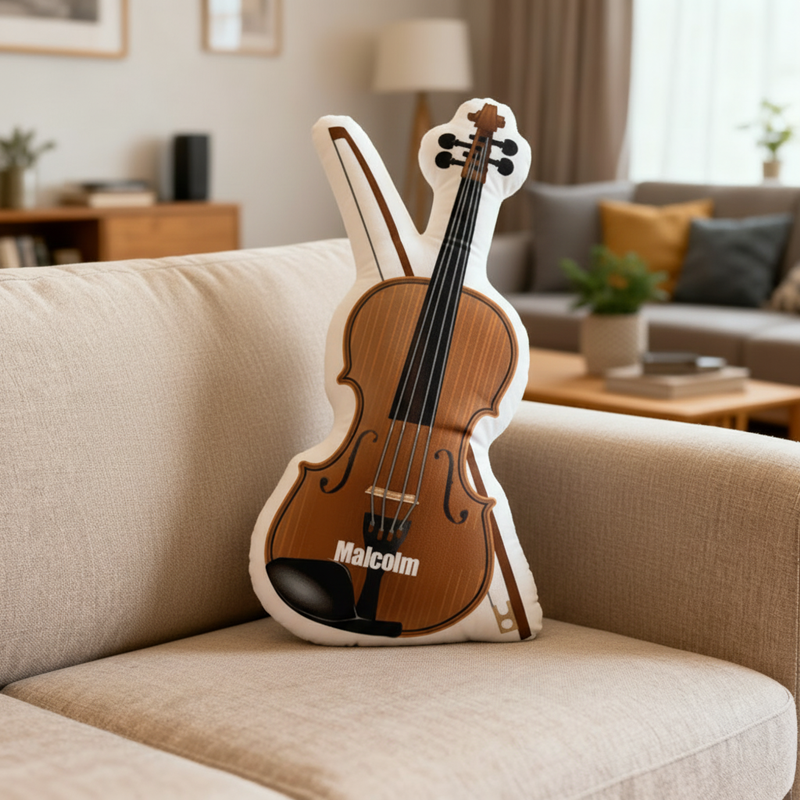 Personalized Cartoon-Shaped Pillow Classical Violin Design Perfect Gift for Music Lover Kids