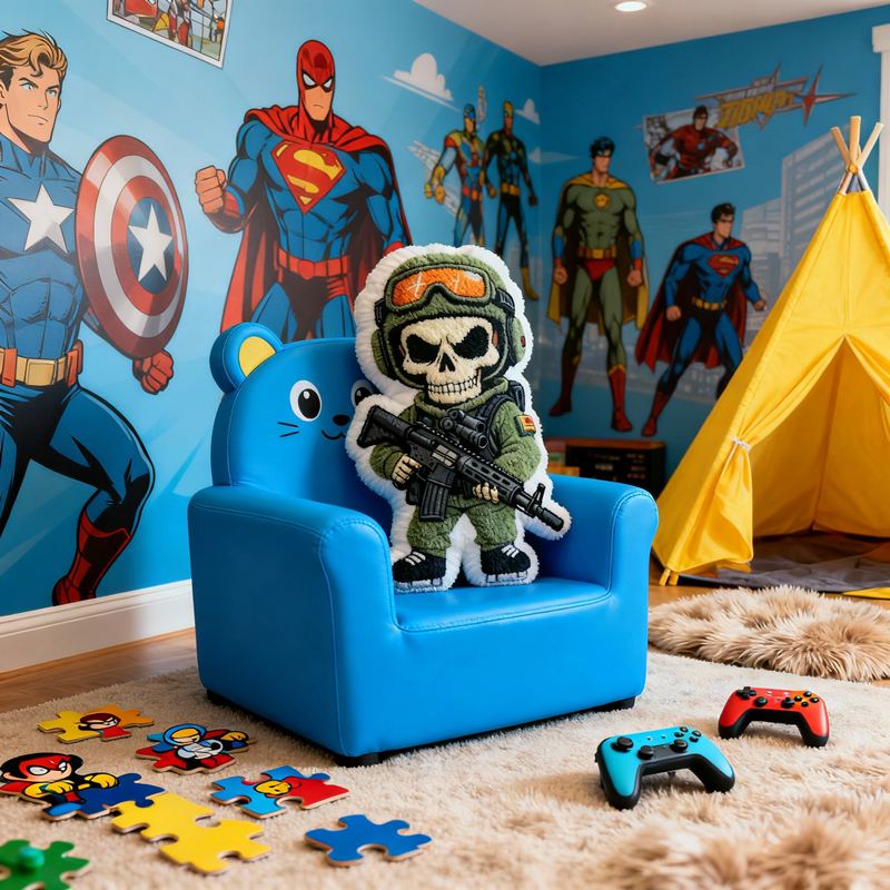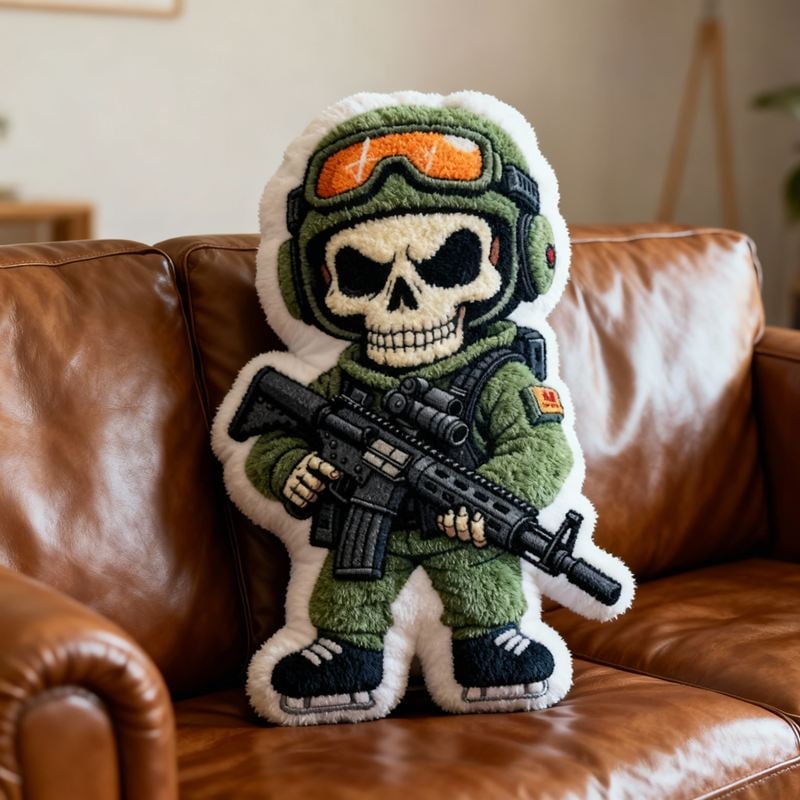 Personalized Cartoon-Shaped Pillow Skull Soldier Design Creative Gift for Boy Kids