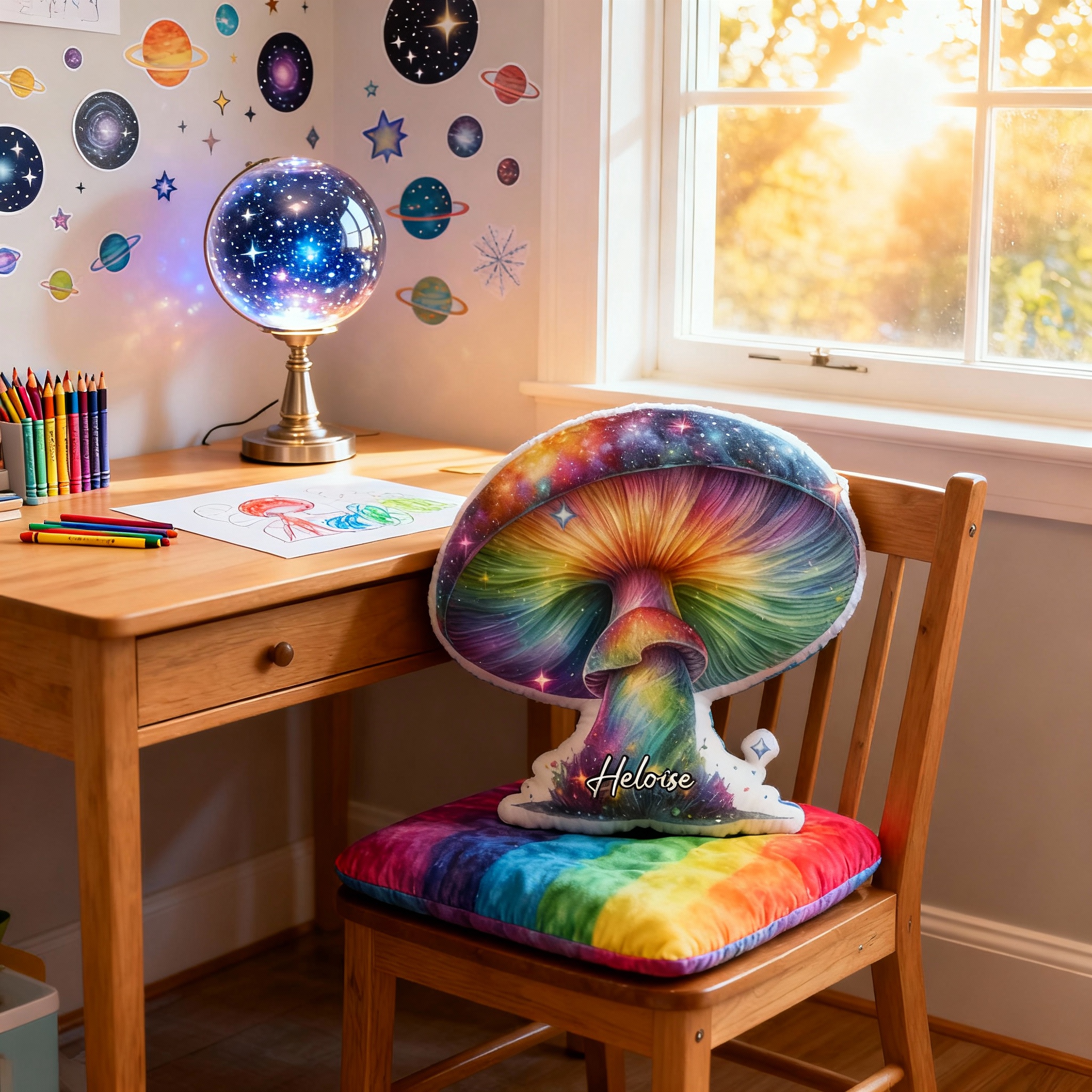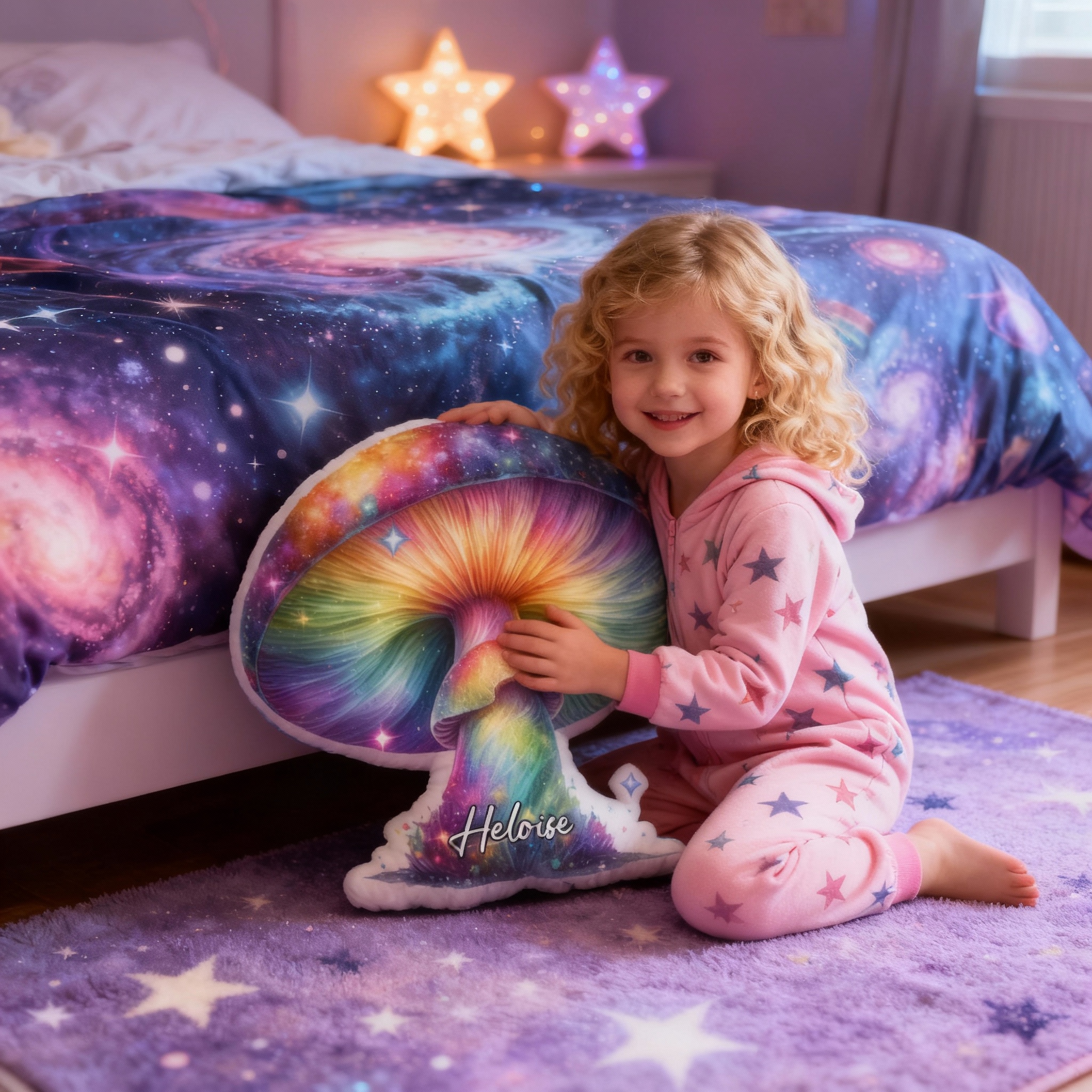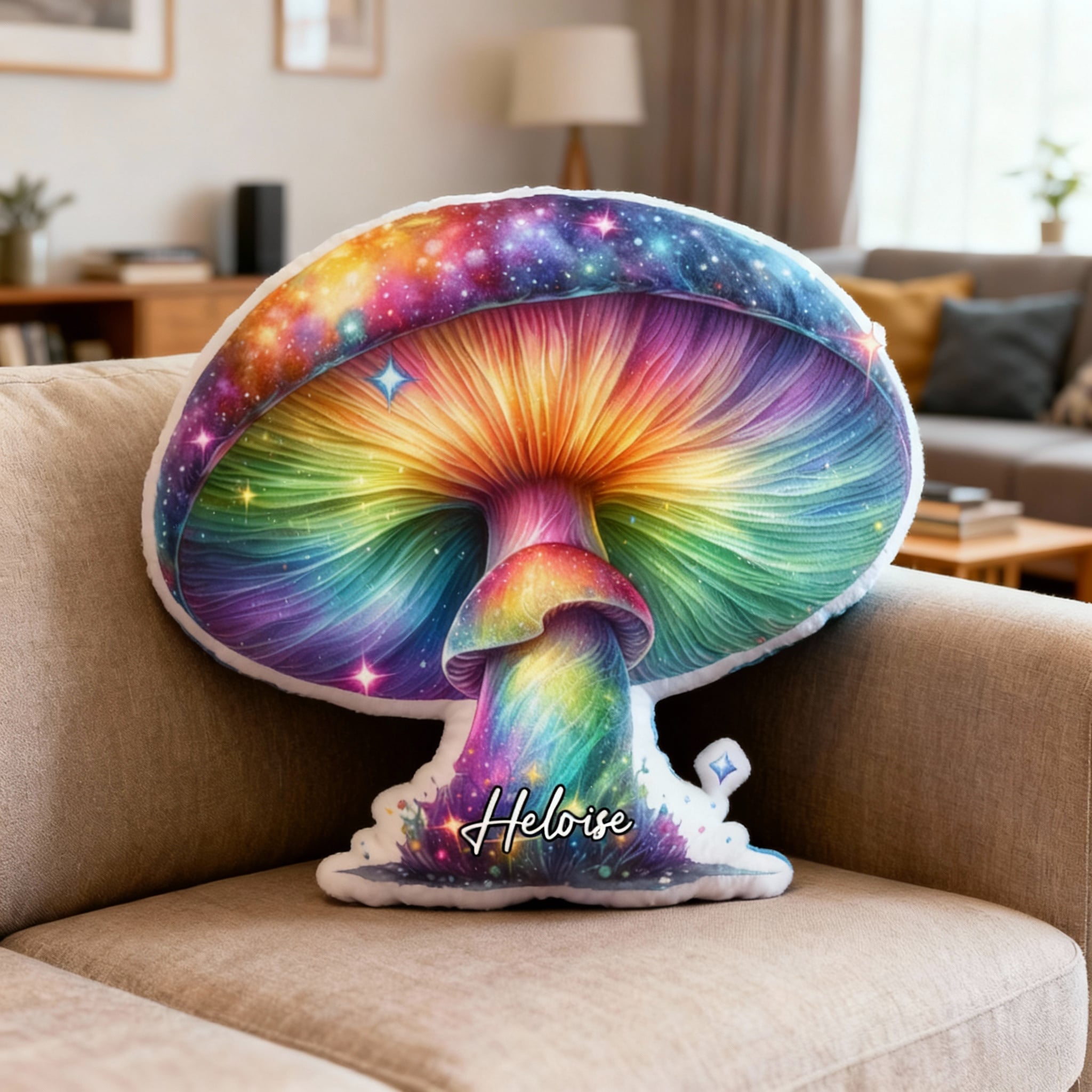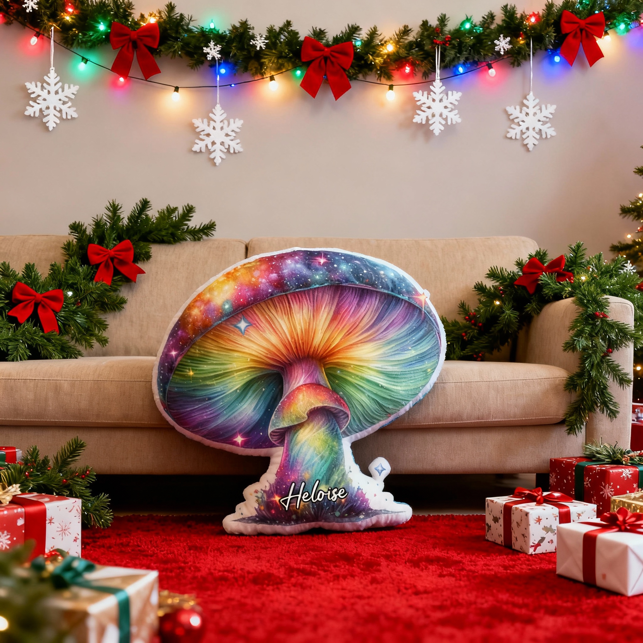 Personalized Colorful Mushroom Throw Pillows Custom Name Cartoon Mushroom Prints for Christmas