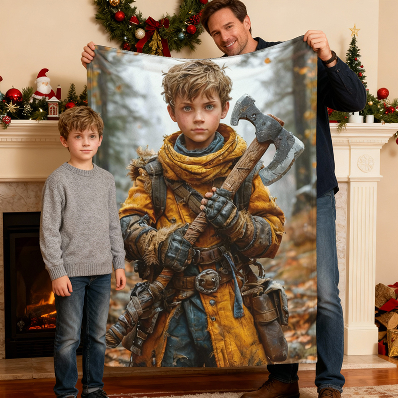 Personalized Face Portrait Blanket Explorer Design Funny Gift for Boy