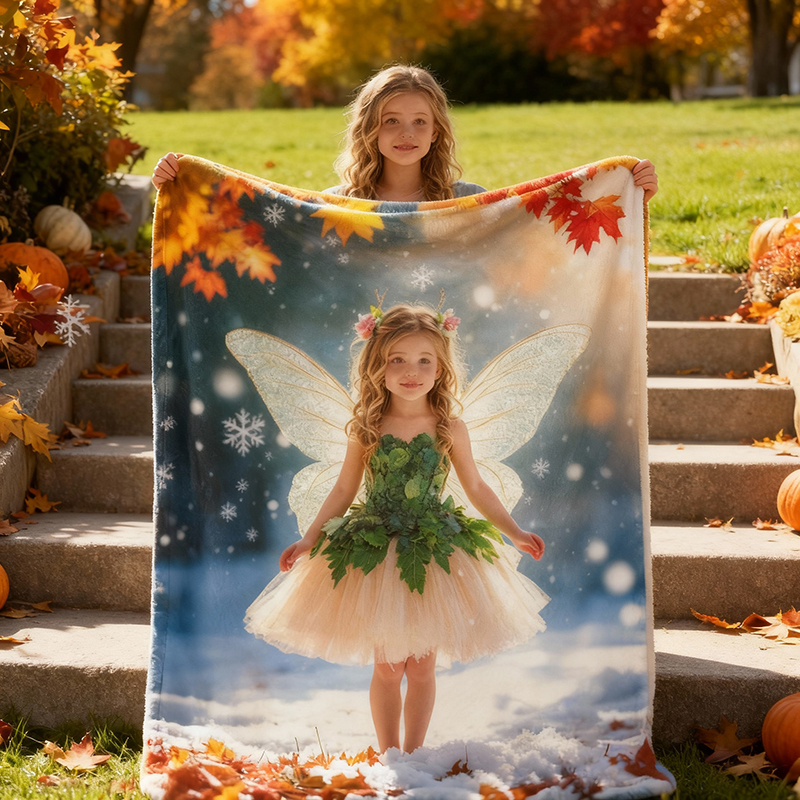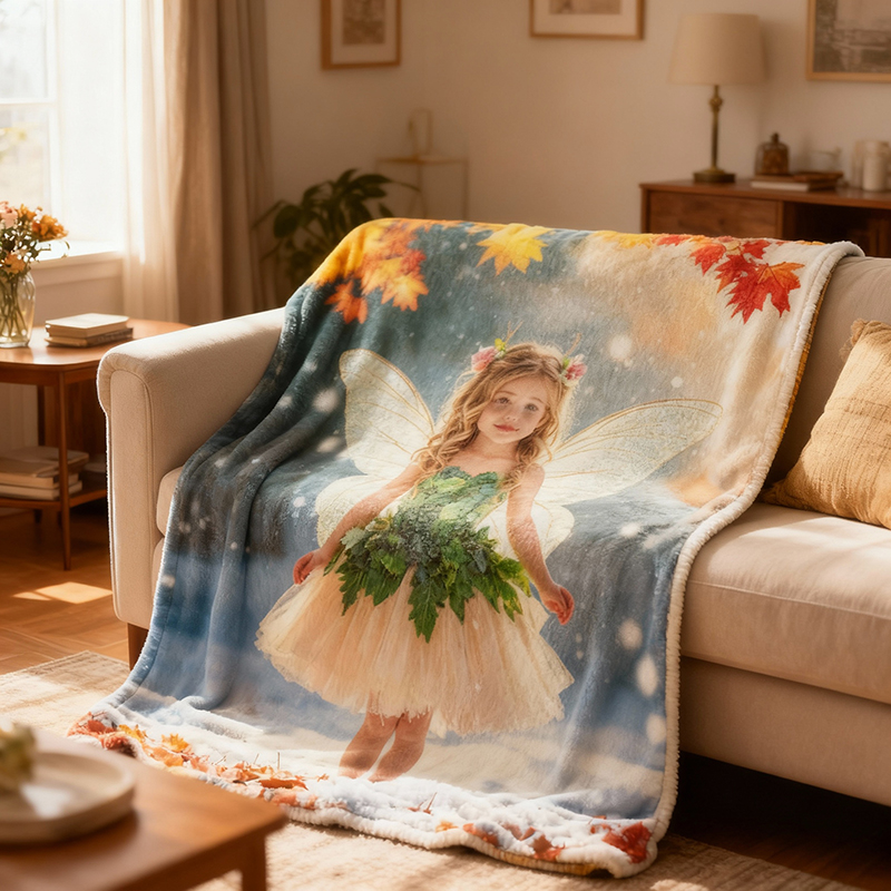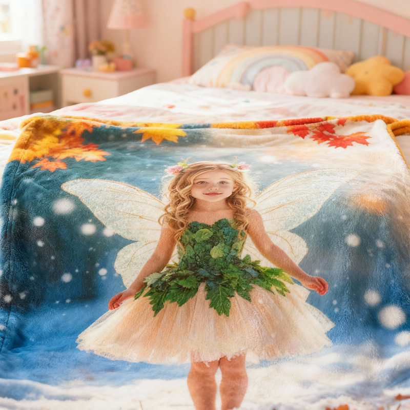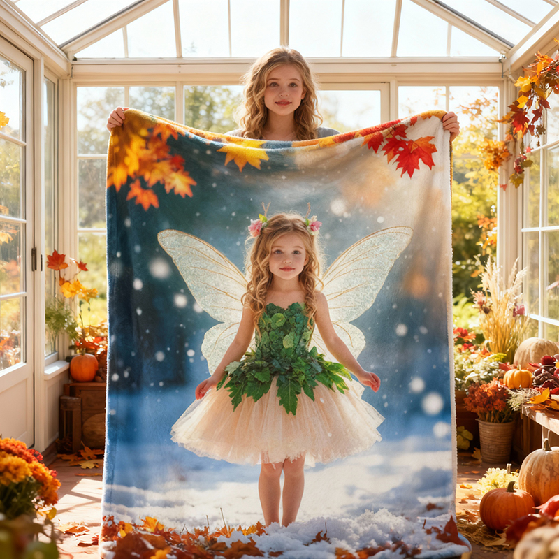 Personalized Face Portrait Blanket with Butterfly Elf Design Beautiful Gift for Girl