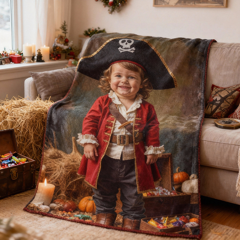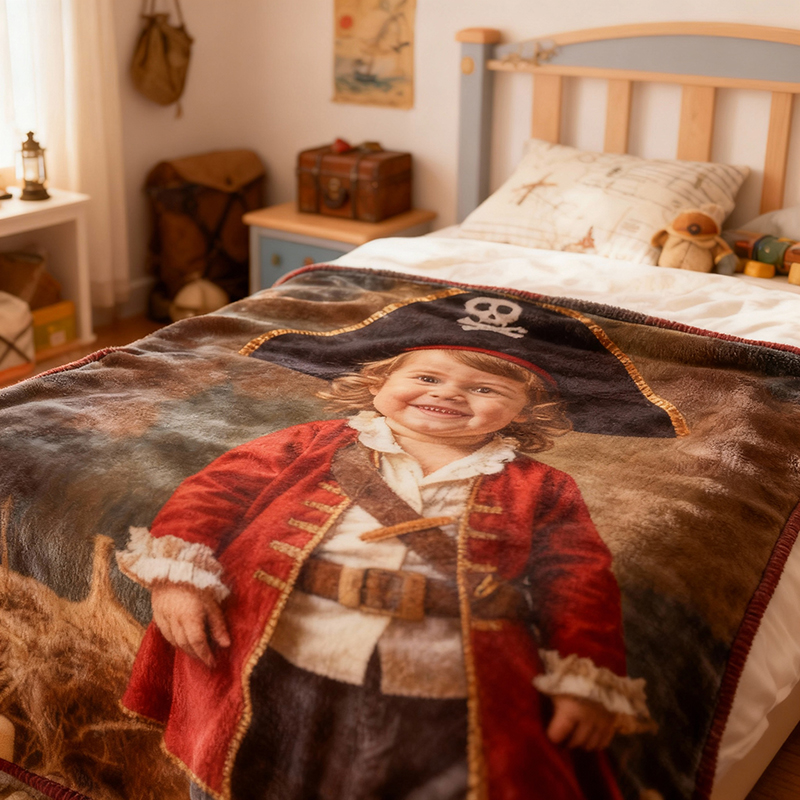 Personalized Face Portrait Blanket with Pirate Character Design Special Gift for Kids