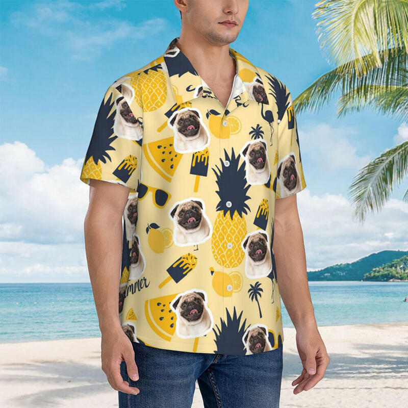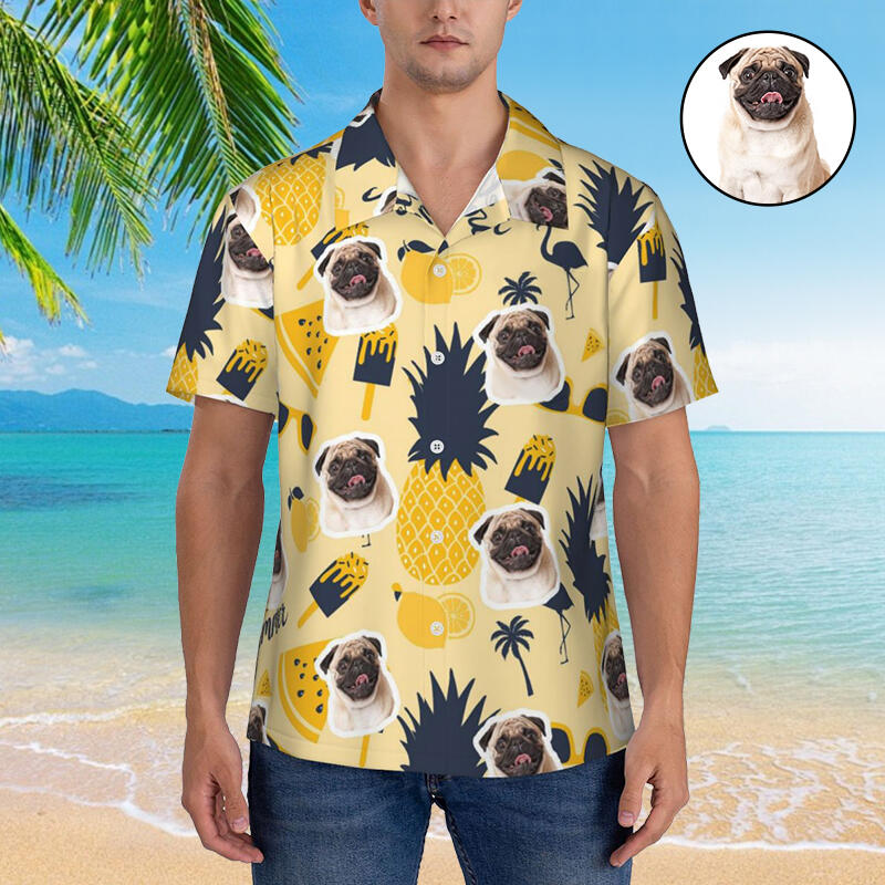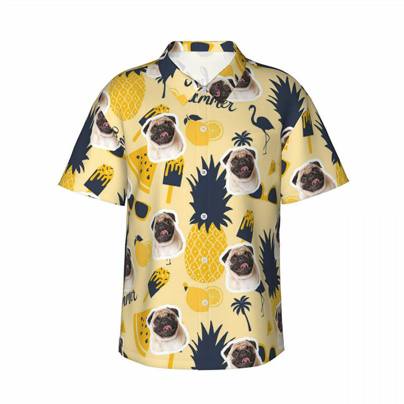 Personalized Hawaiian Shirt with Yellow Pineapple Pattern Short Sleeve Shirt Gift for Pet Owners