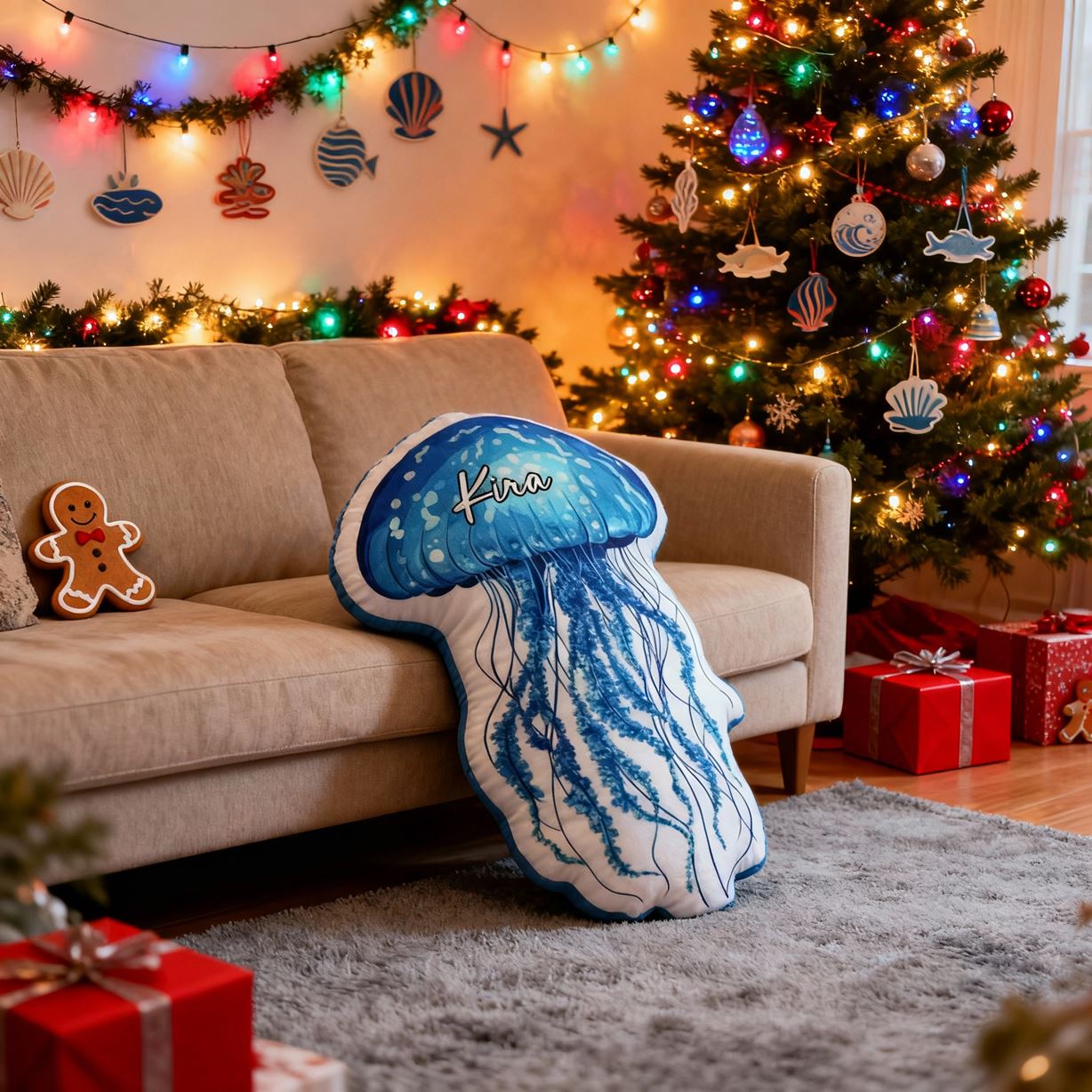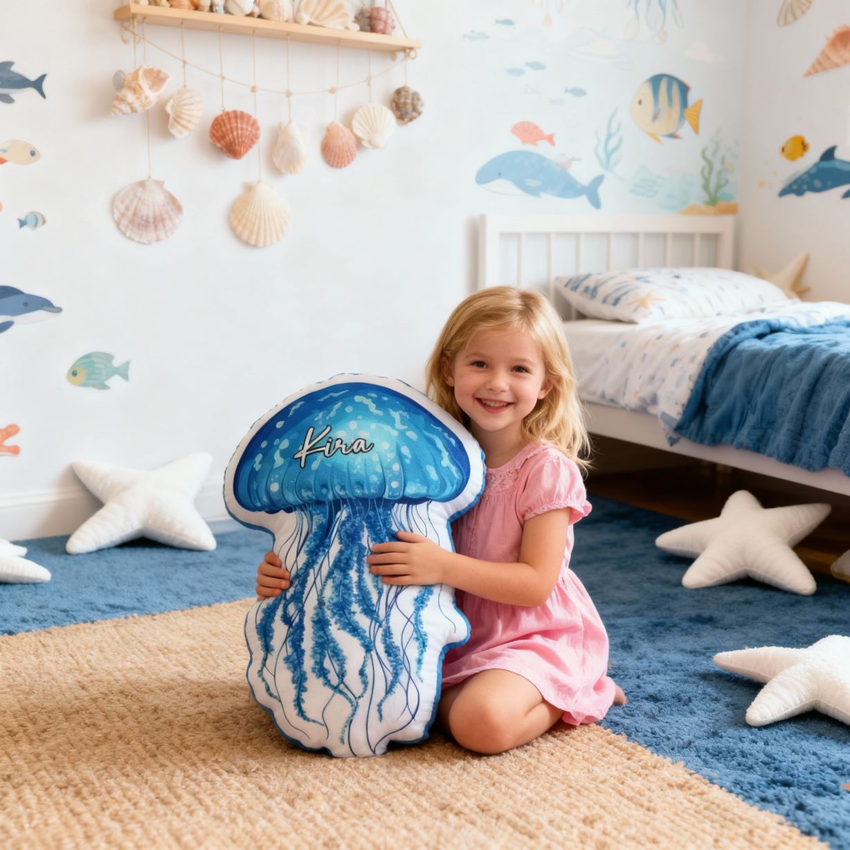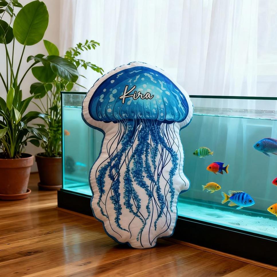 Personalized Jellyfish Pillow Cartoon Marine Life Print Pillow Christmas Gift for Children