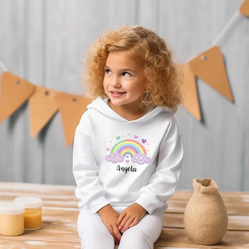 Personalized Kids Hoodie With Rainbow Pattern Custom Name Children's Gifts