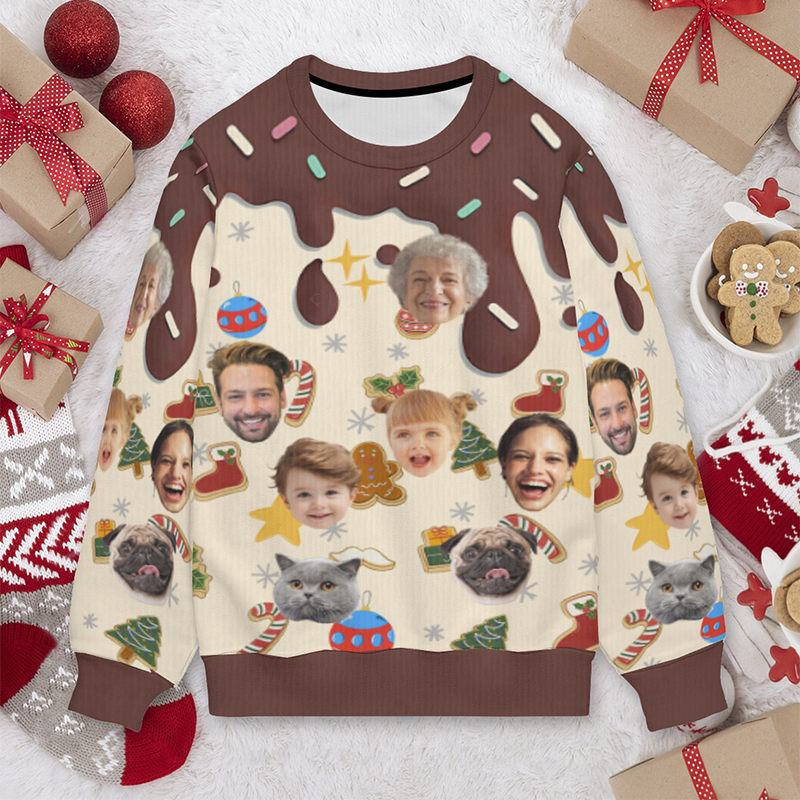 Personalized Kids Ugly Sweater Unisex Custom Face Photo Dessert Style Funny Design Christmas Gift