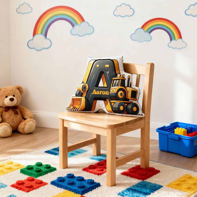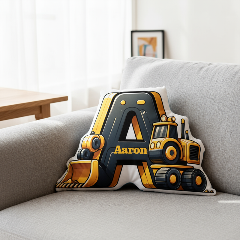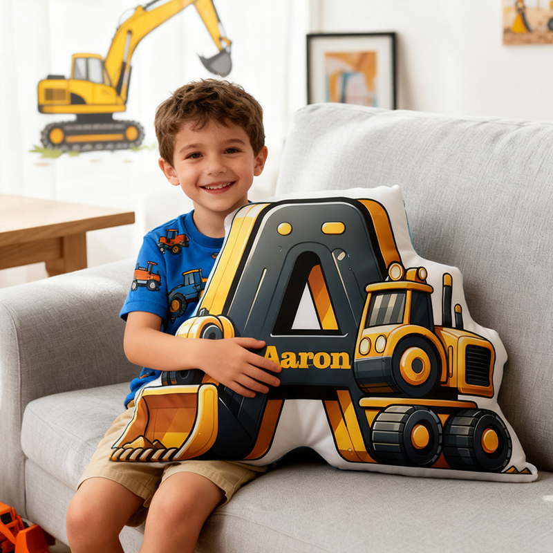 Personalized Letter Pillow with Cartoon Excavator Pattern Practical Gift for Son