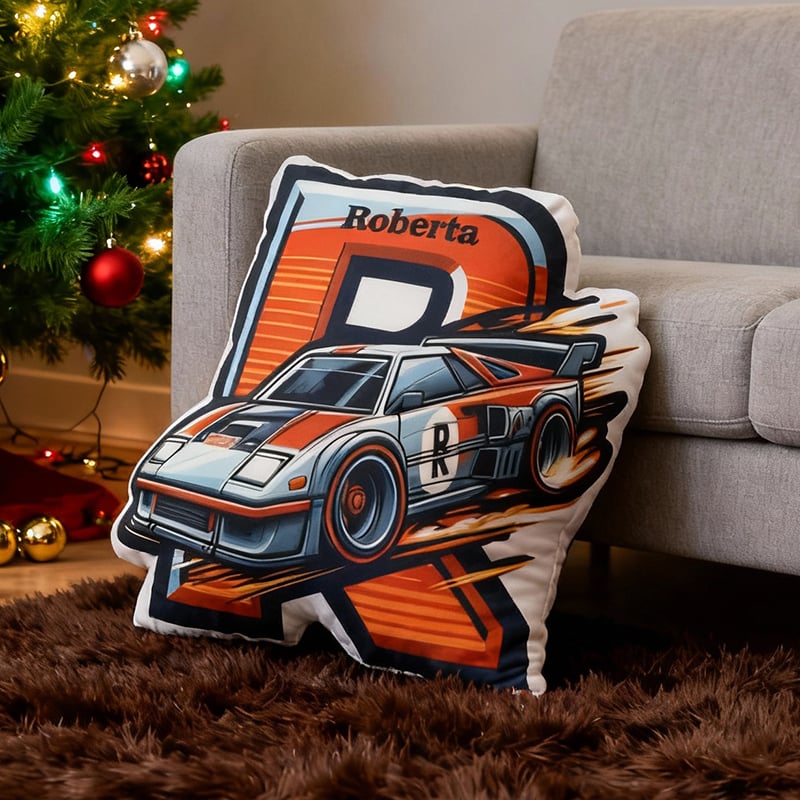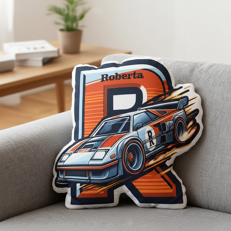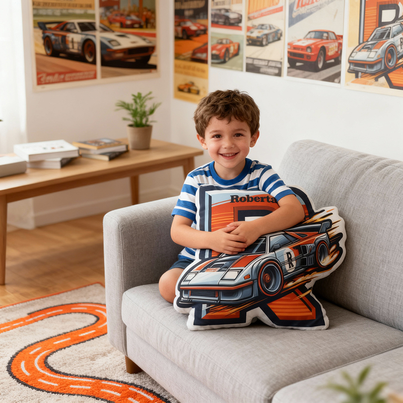 Personalized Letter Pillow with Cartoon Racing Car Pattern Creative Gift for Brother
