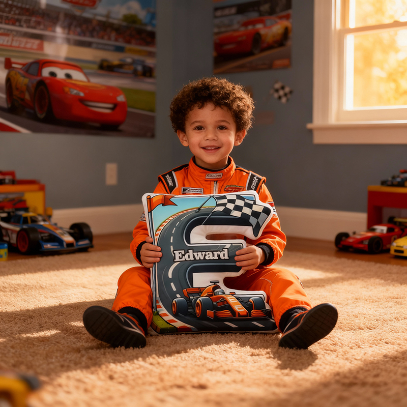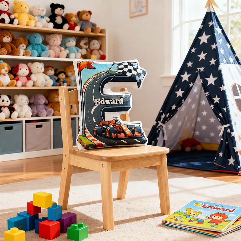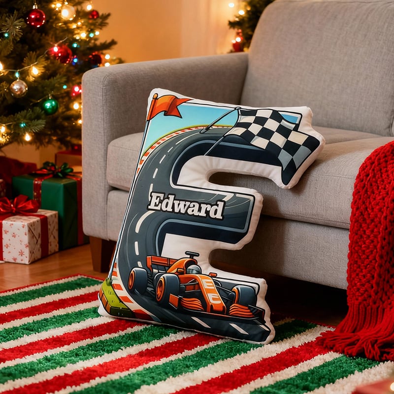 Personalized Letter Pillow with Cartoon Racing Car Pattern Popular Gift for Kids