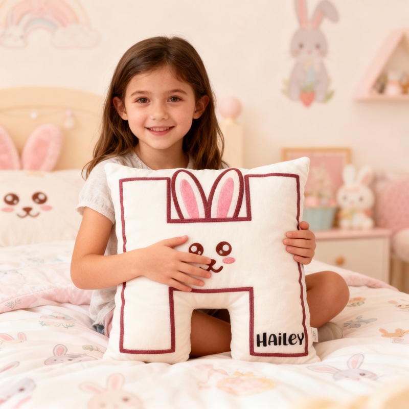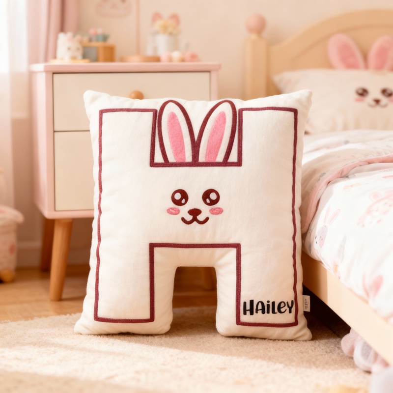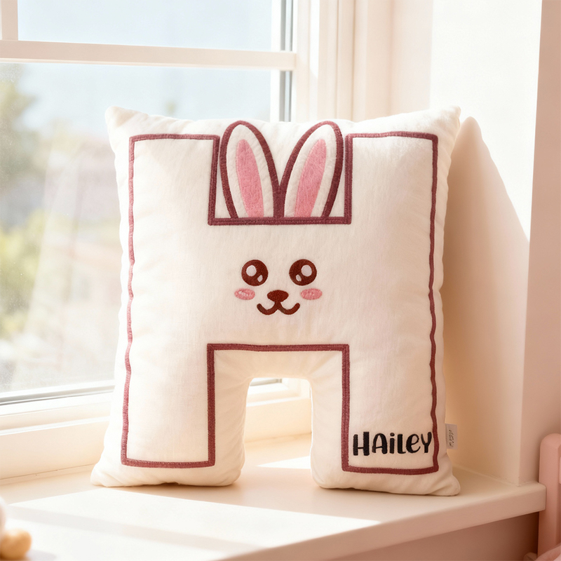 Personalized Letter-Shaped Pillow White Rabbit Alphabet Design Cute Gift for Girls