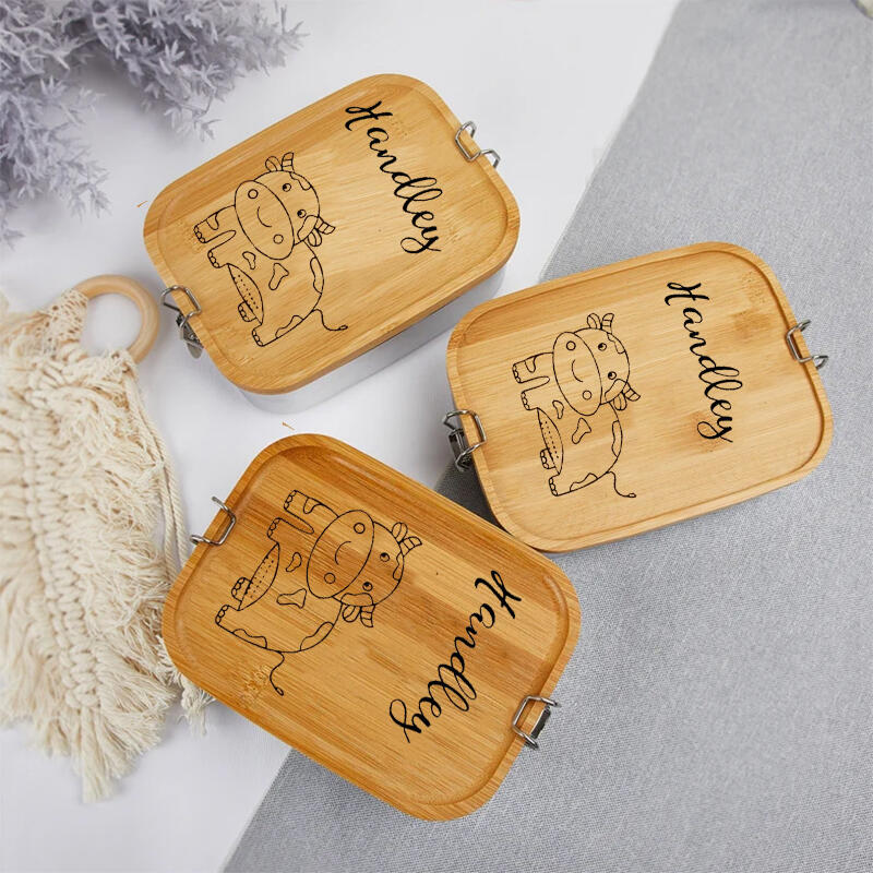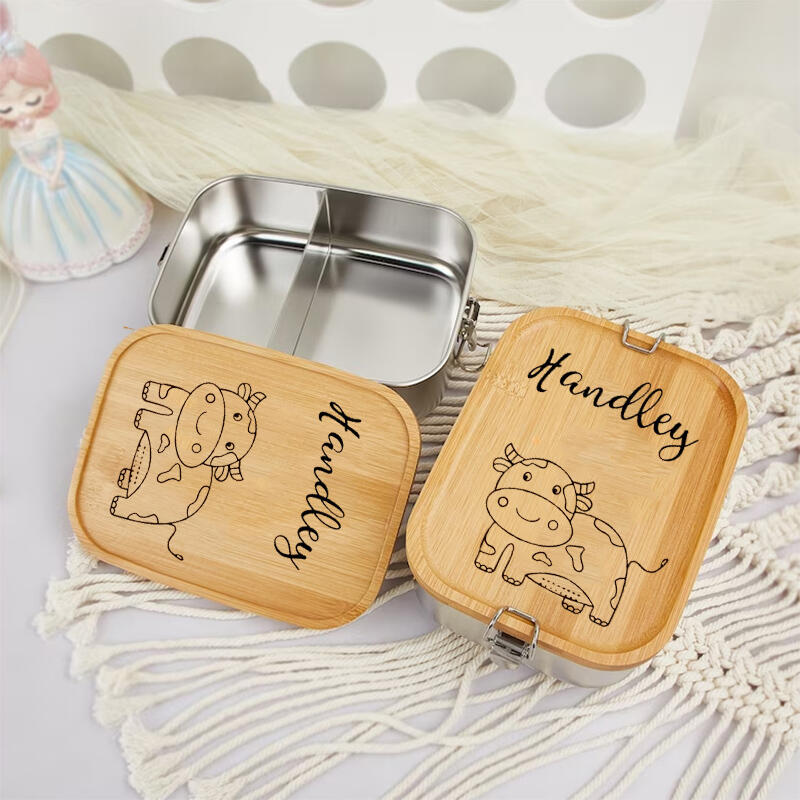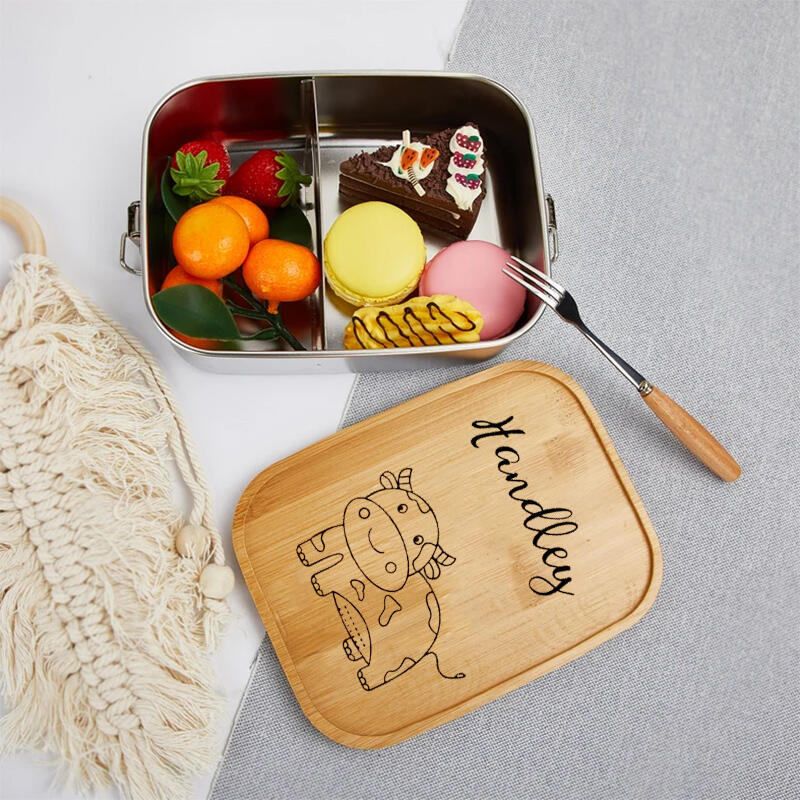 The personalized lunch box is made of stainless steel and wood material, the material is fine, the workmanship is exquisite, and it is easy to wash. Custom Lunch Boxes can be customized with your name and photo on the lid to generate your unique logo and express your personality. It is also the best gift for children back to school.