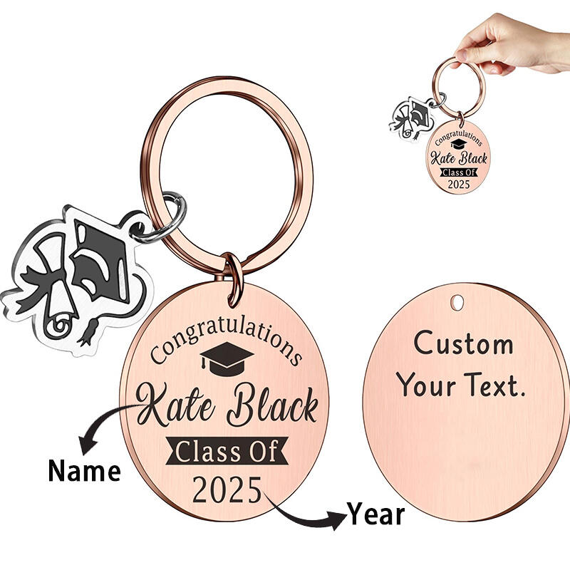Personalized Metal Keychain Customized Name and Year Graduation Gift for Friends