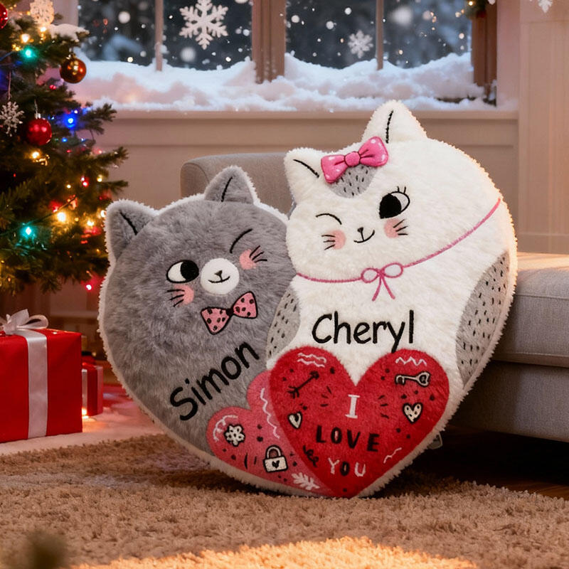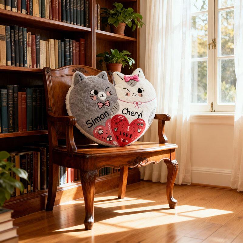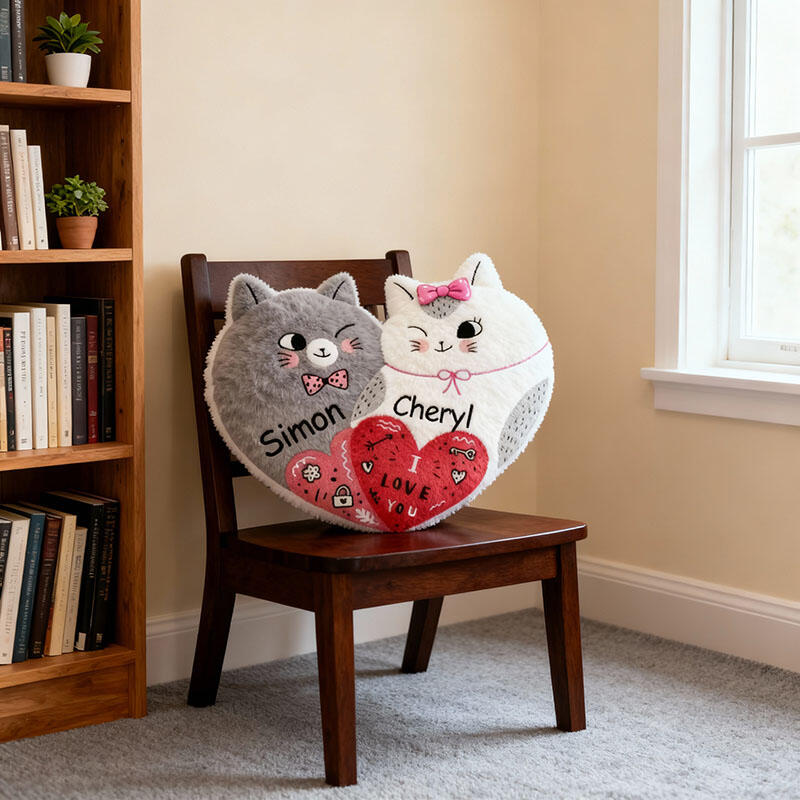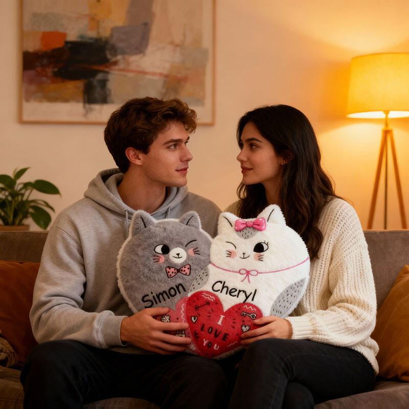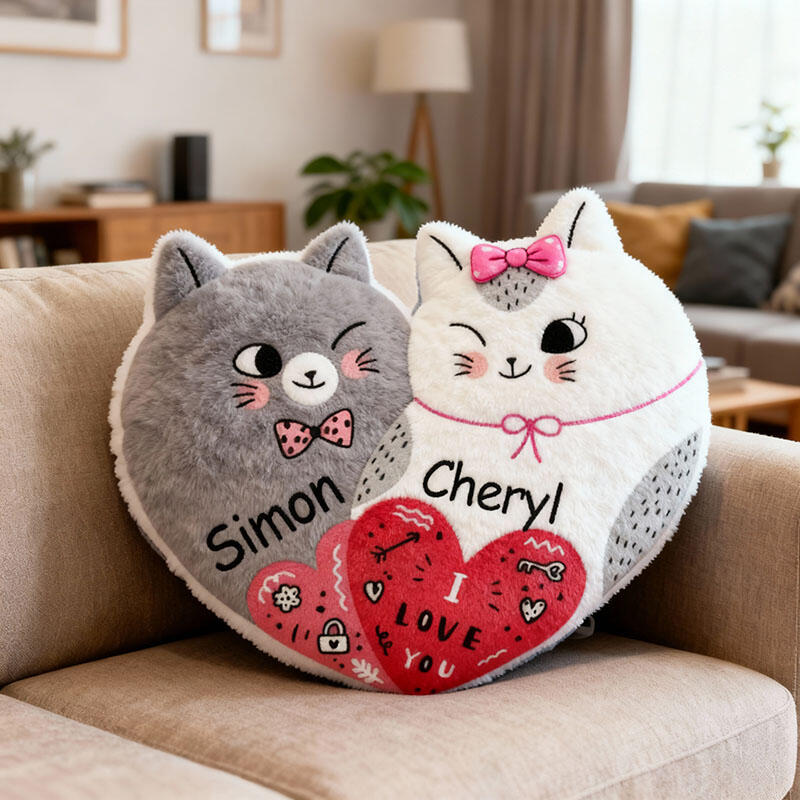 Personalized Name Pillow Cat Design Sweet Gifts for Couple