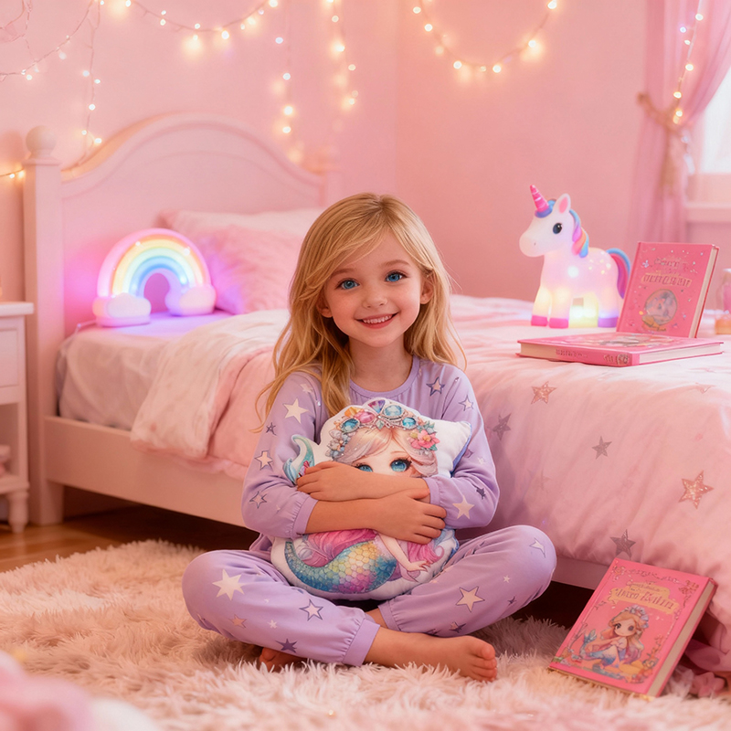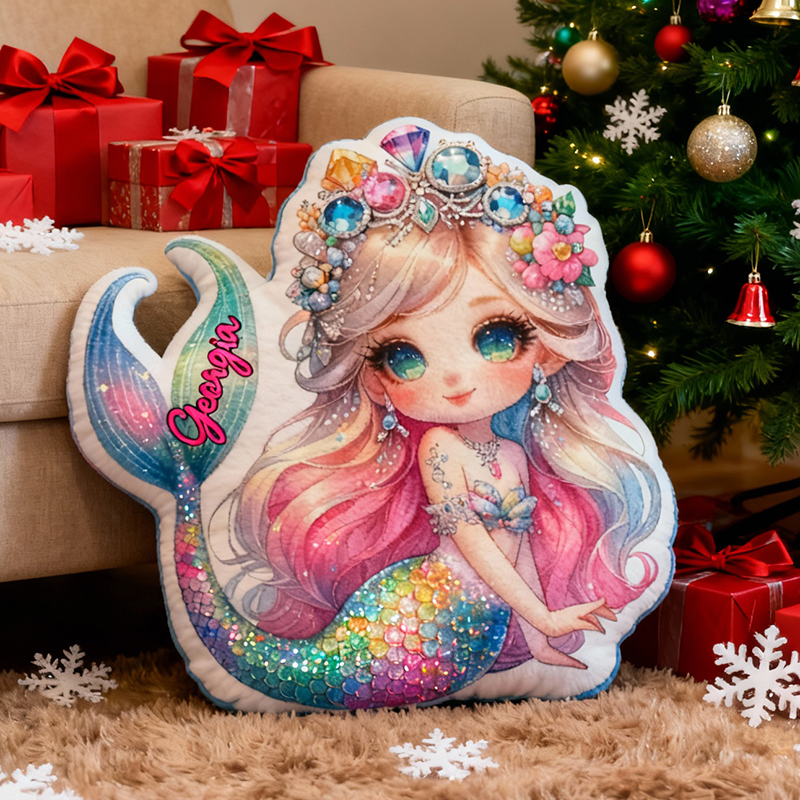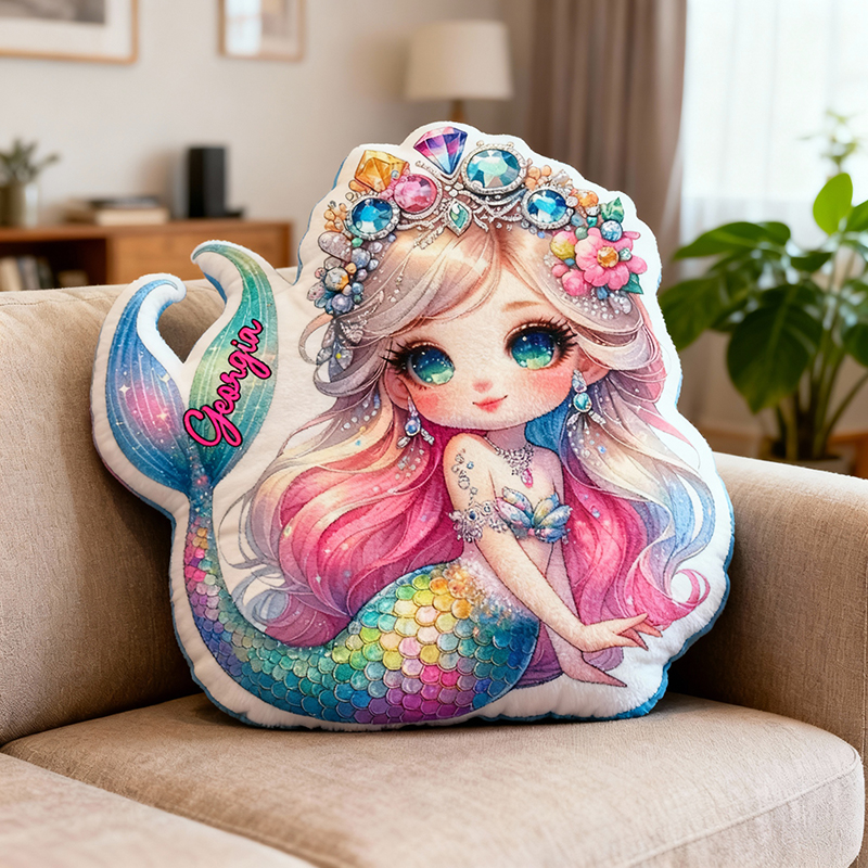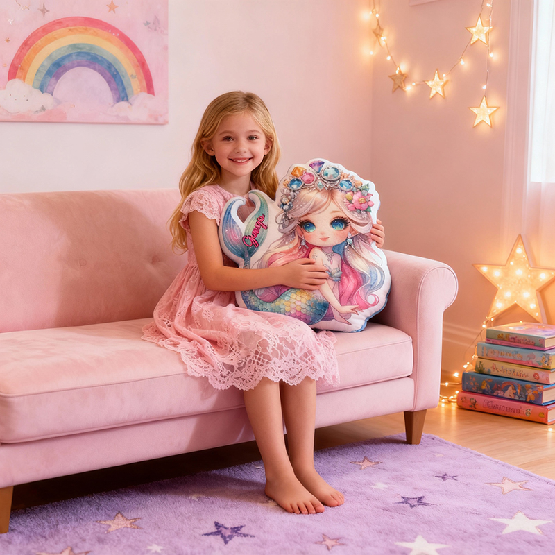 Personalized Name Pillow with Beautiful Cartoon Girl Patterns Best Gift for Daughter