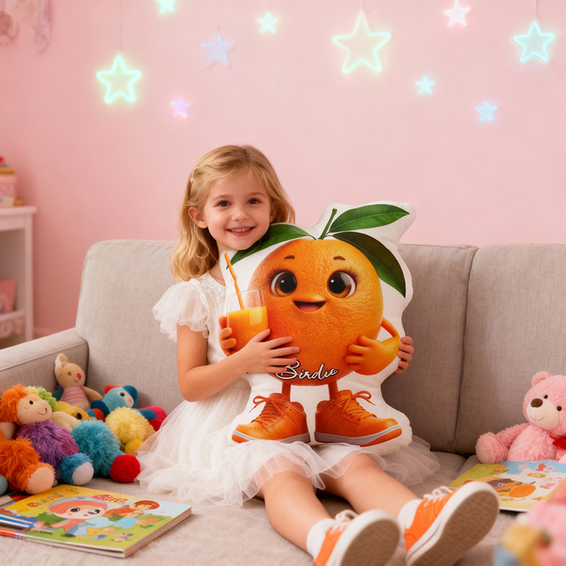 Personalized Name Pillow with Orange Pattern Sweet Gift for Children