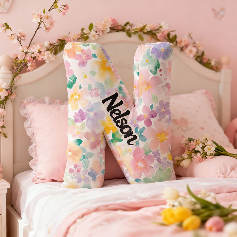 Personalized Name Pillow with Watercolor Flowers Pattern Best Gift for Daughter