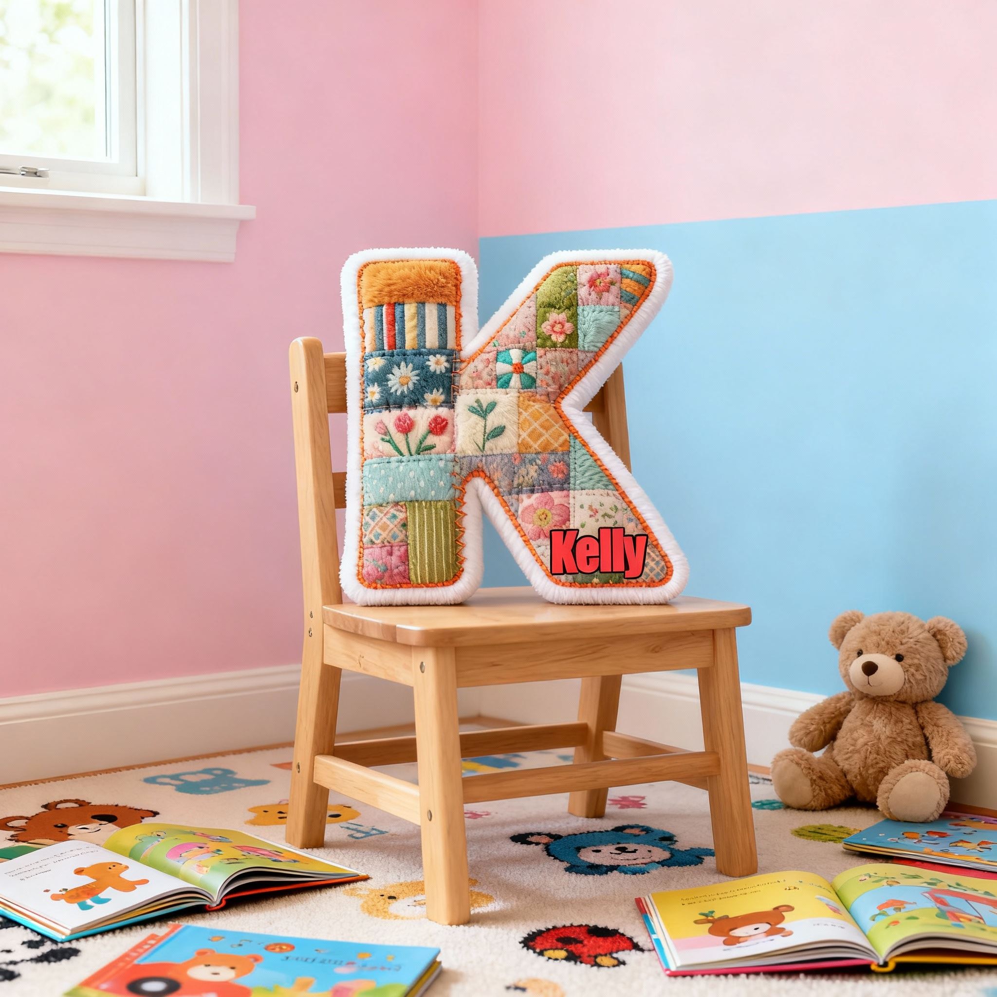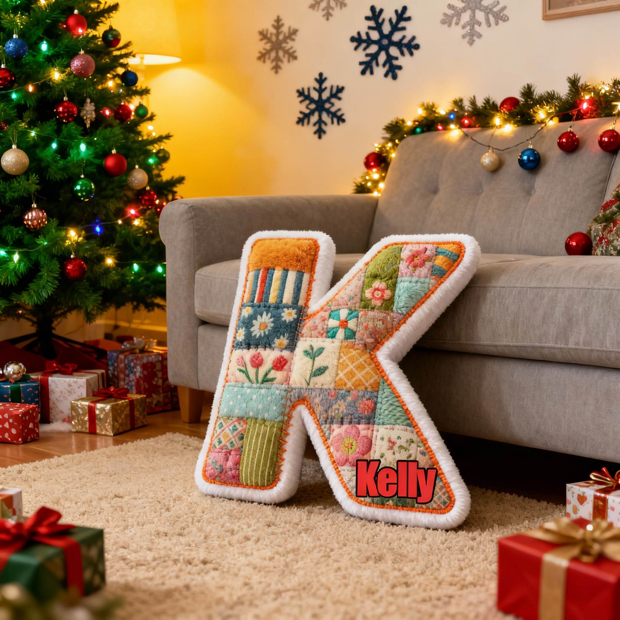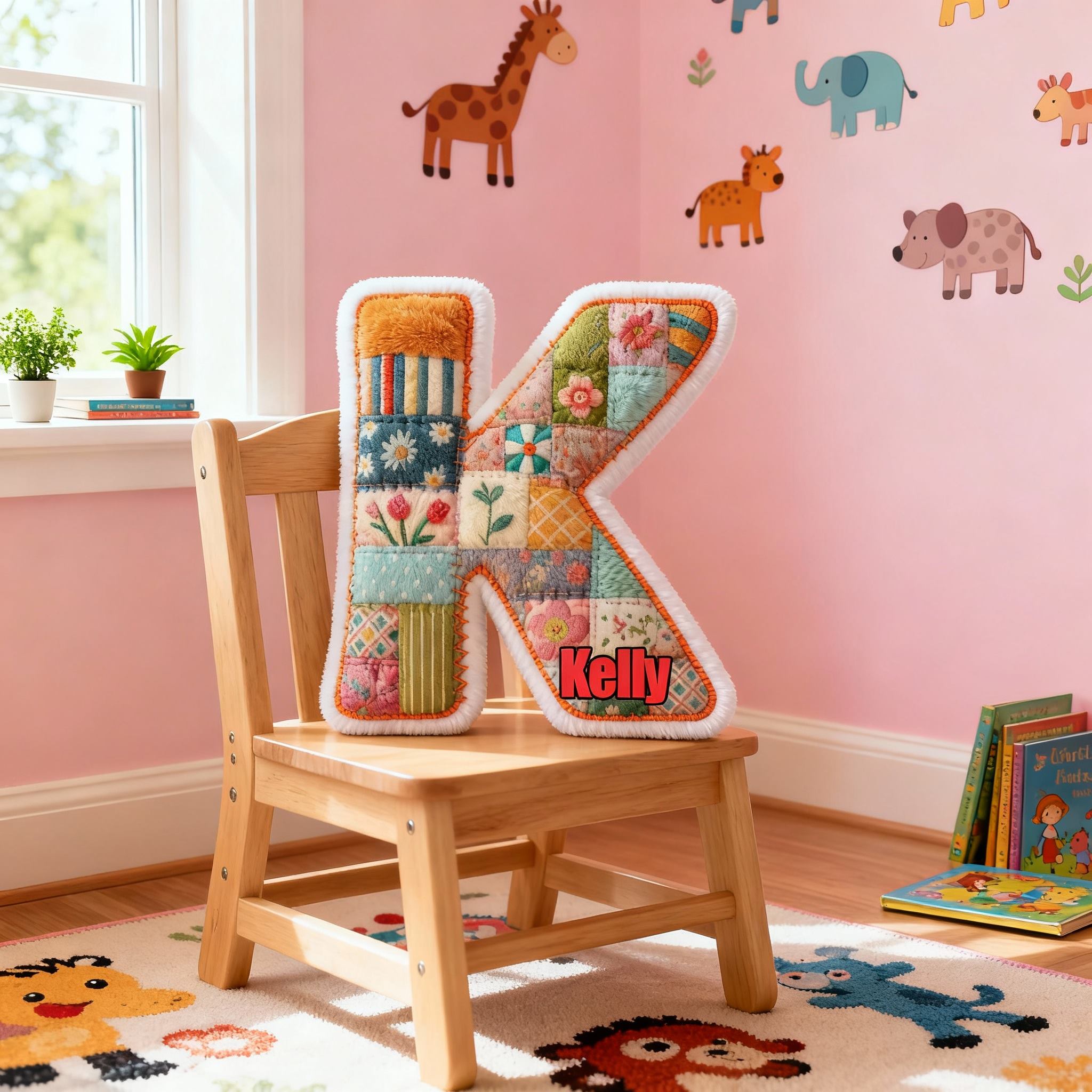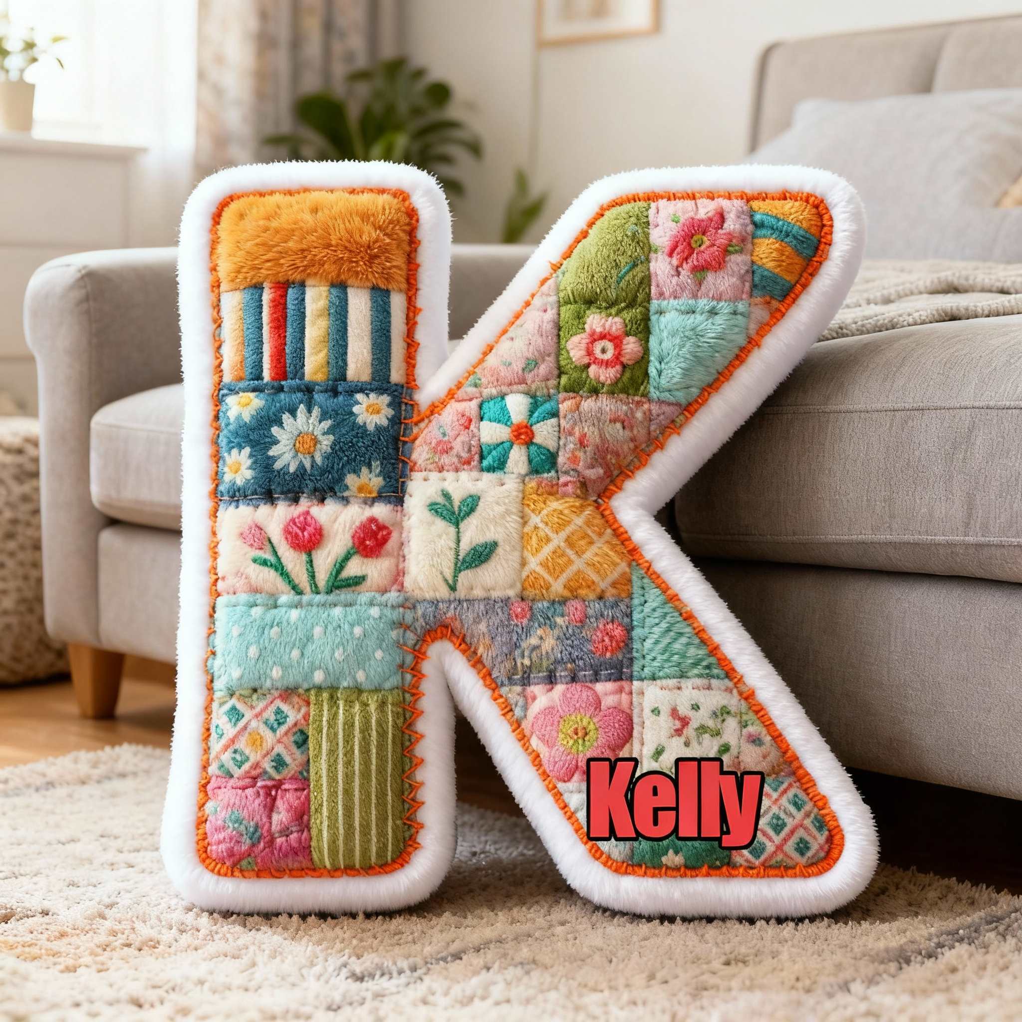 Personalized Patchwork Flower and Letter Pillow Customizable Name Fun Gift for Your Family