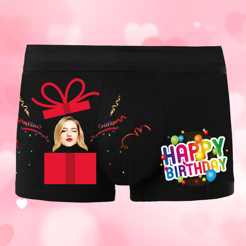 Personalized Photo Men's Underwear Boxer Briefs with Balloon Pattern Interesting Gift for Birthday