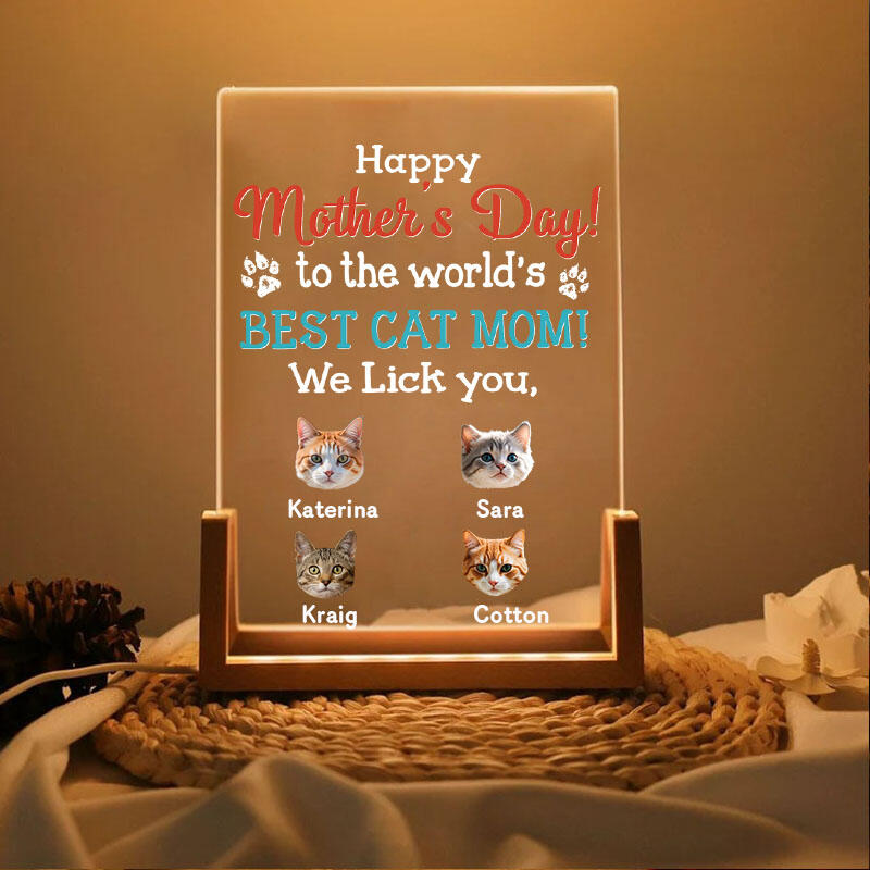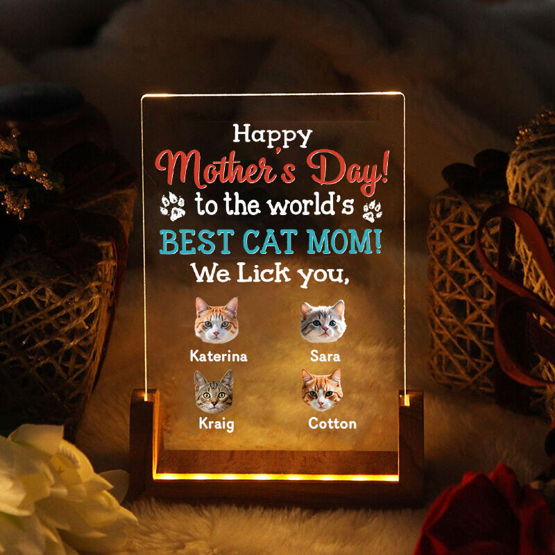 Personalized Picture Night Light with Custom Name Simple Gift for Pet Lover "Happy Mother's Day"