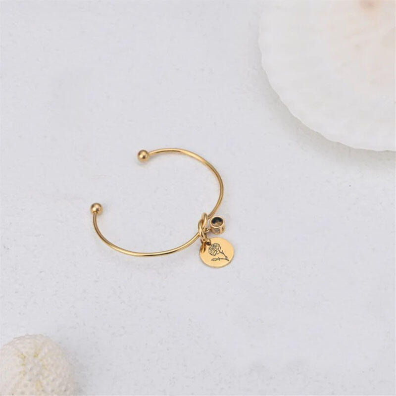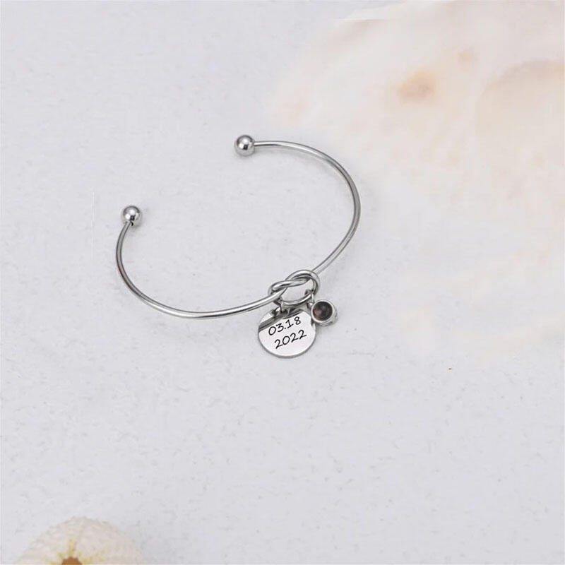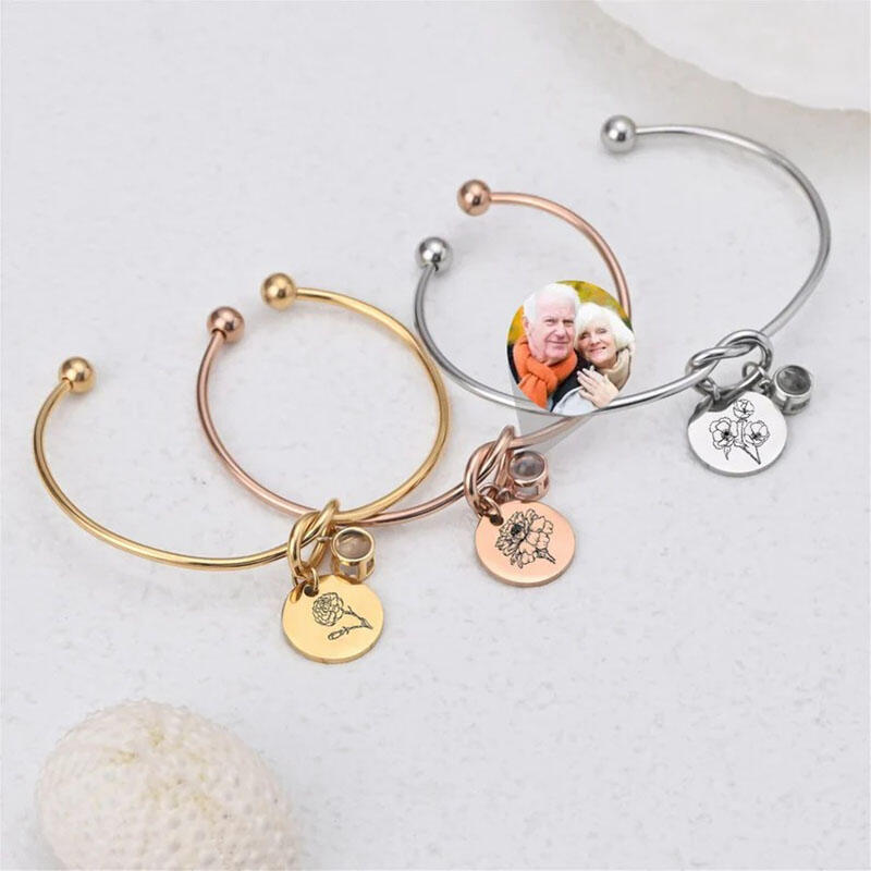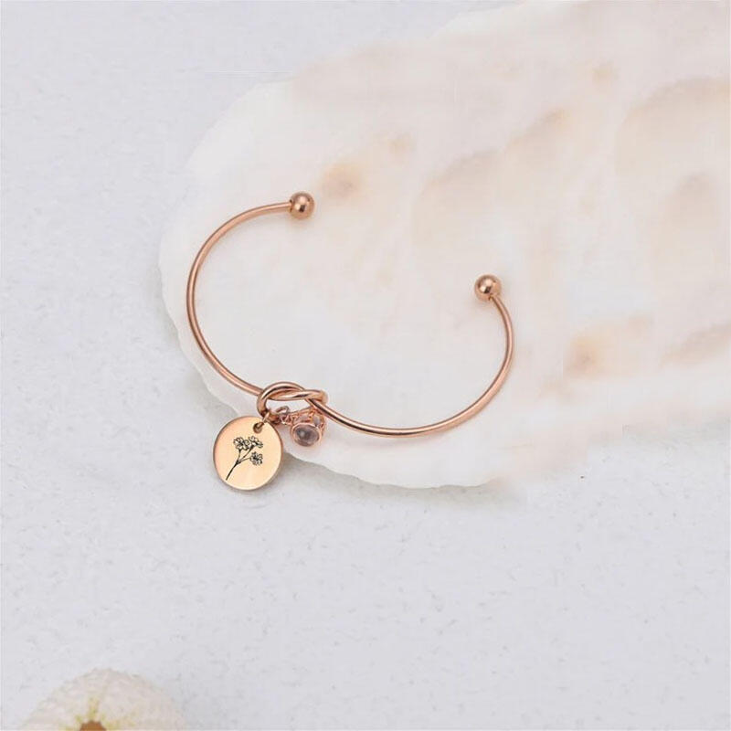 Personalized Picture Projection And Engravable Bracelet with Birthflower Beautiful Gift for Her