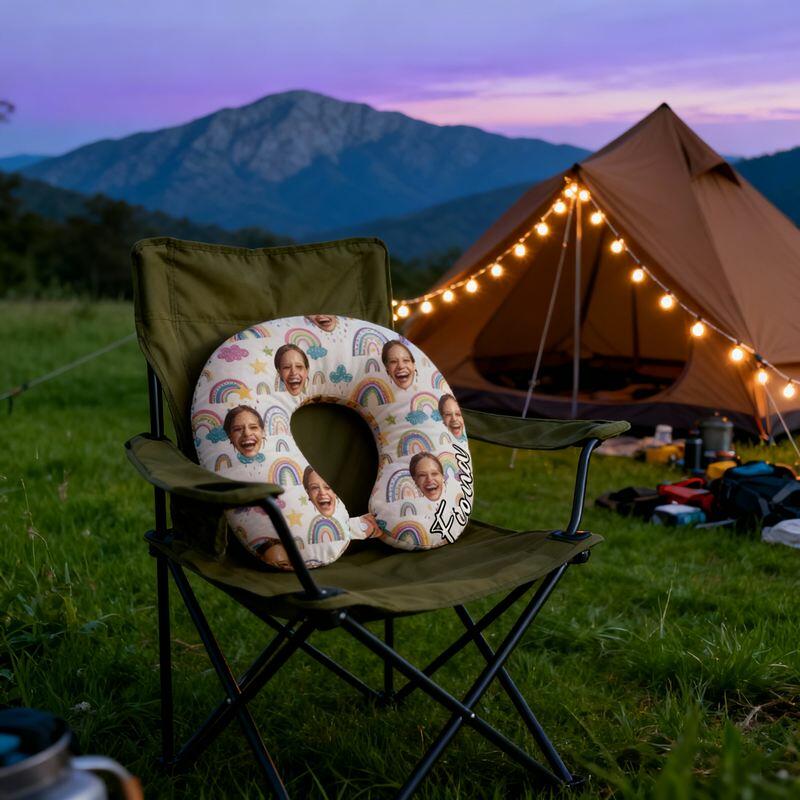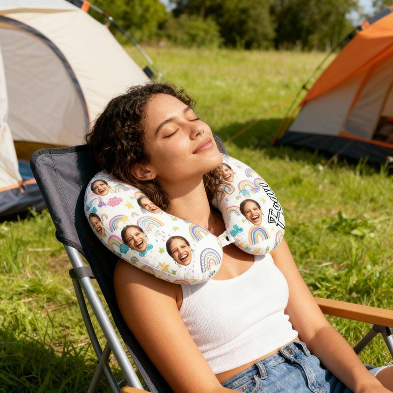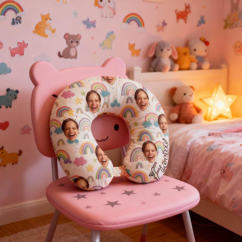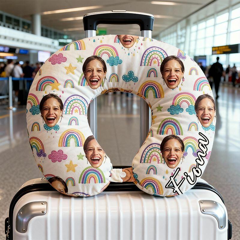 Personalized U-Shaped Neck Pillow Custom Photo Cute Rainbow Design Vacation Gift for Friends