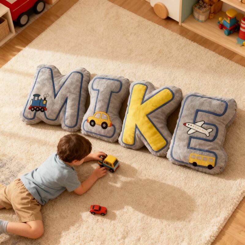 Personalized Vehicle Themed Cushion for Boys with Letters Christmas Gift for Kids